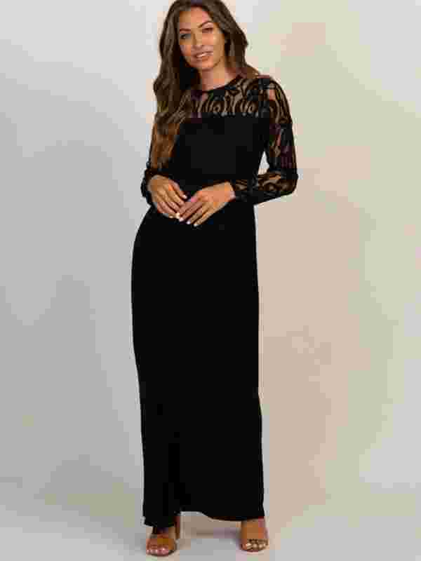 Are you looking for a sophisticated maternity dress that you can wear to work, out with your girls, or even on a date? This simple lace patchwork dress is perfect for all occasions! Available in a variety of colors, it will make you feel confident and beautiful. It has a comfortable fit that won't restrict your movement. Key features include. - Round neckline - Long sleeves - Lace patchwork stretch fabric - Long skirt