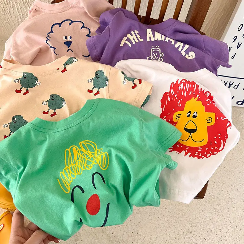 2023 Summer Kids T-shirt Short-sleeve Tops for Baby Cartoon Boys Shirts Girls Blouse Children Tees Toddler Outfits Clothes