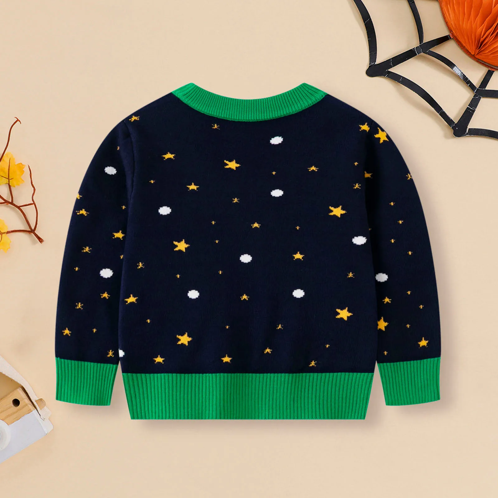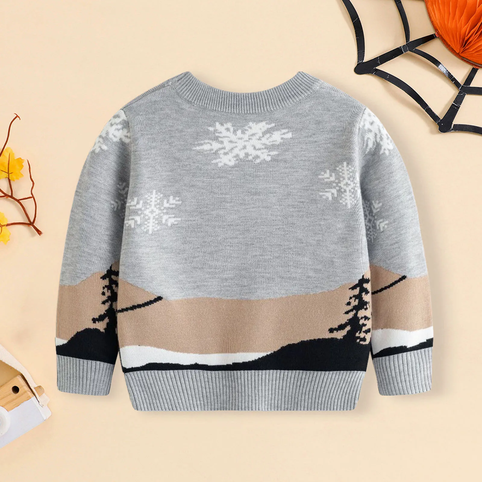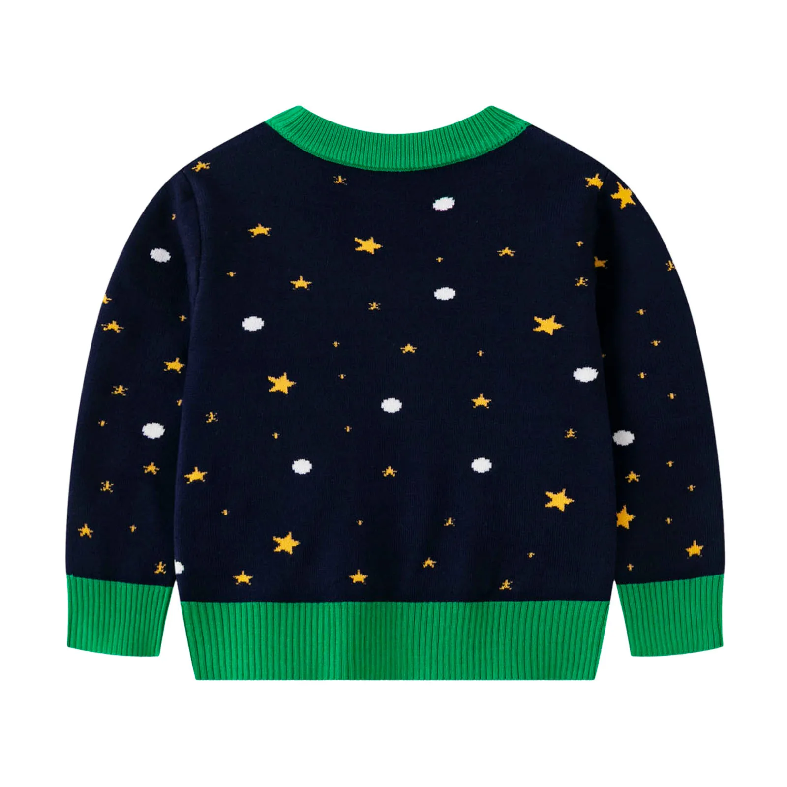 Toddler Boys Girls Christmas Cartoon Warm Knitted Sweater Long Sleeve Tops Knitwear Cardigan Coat