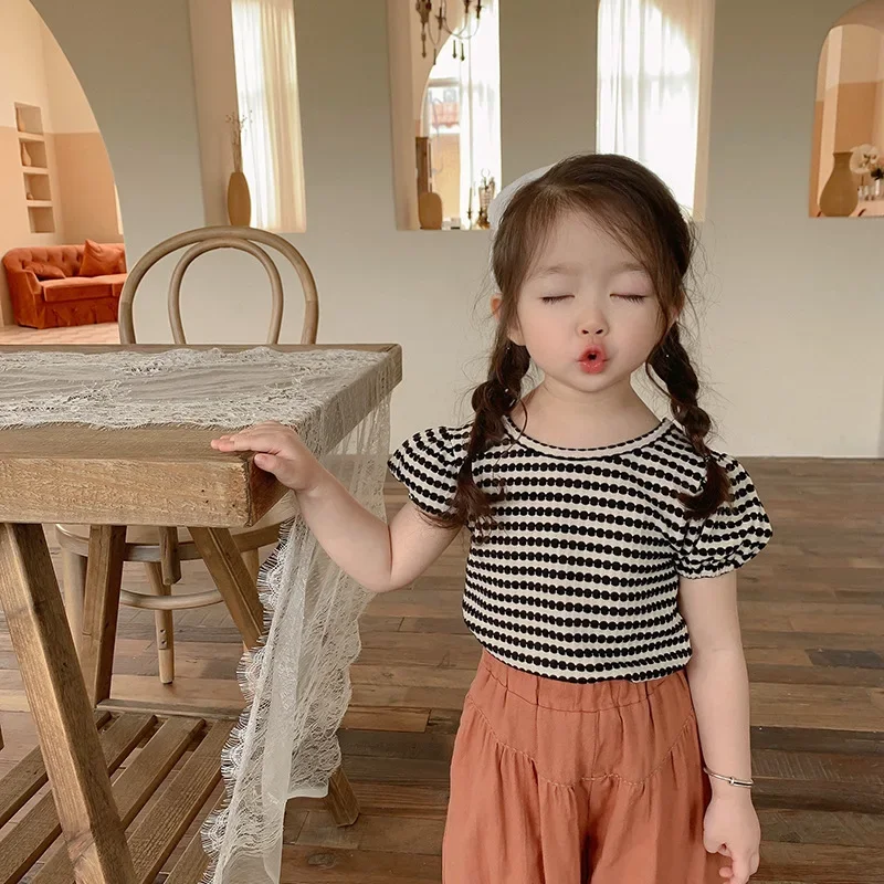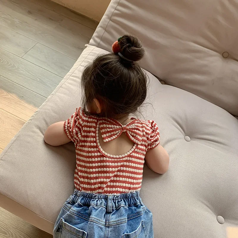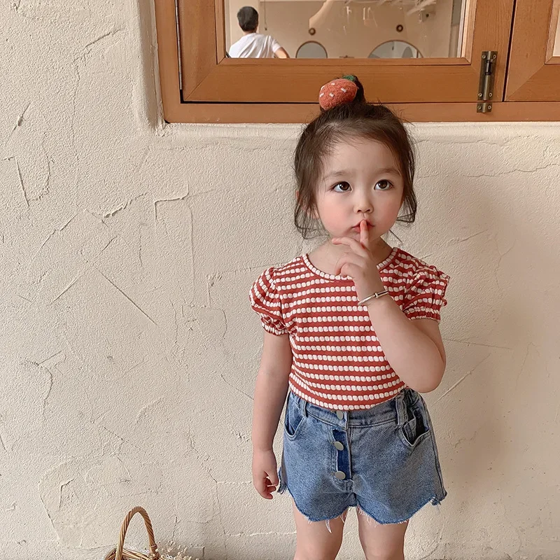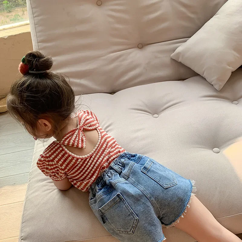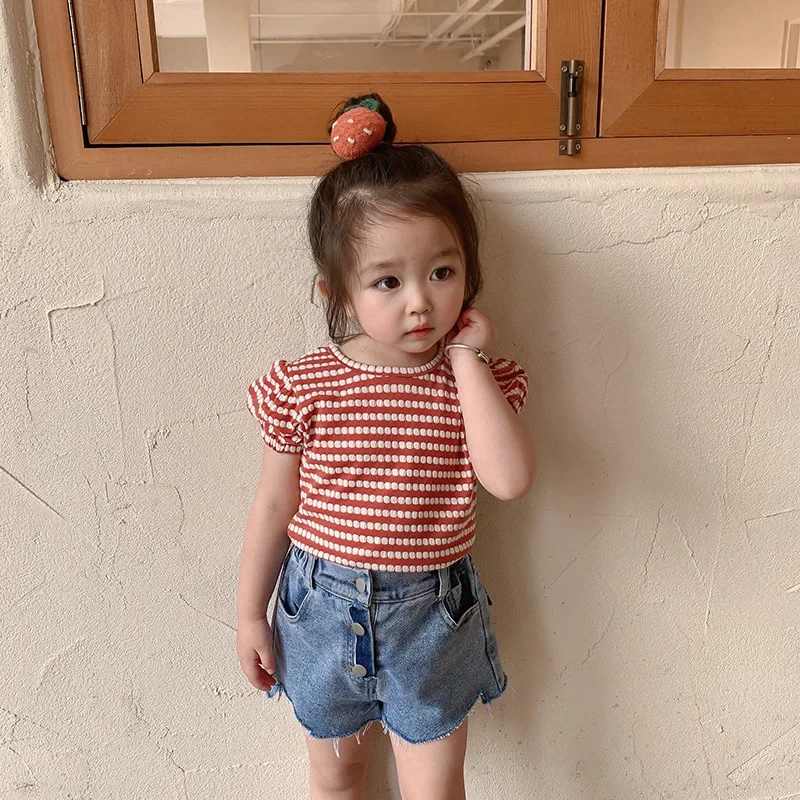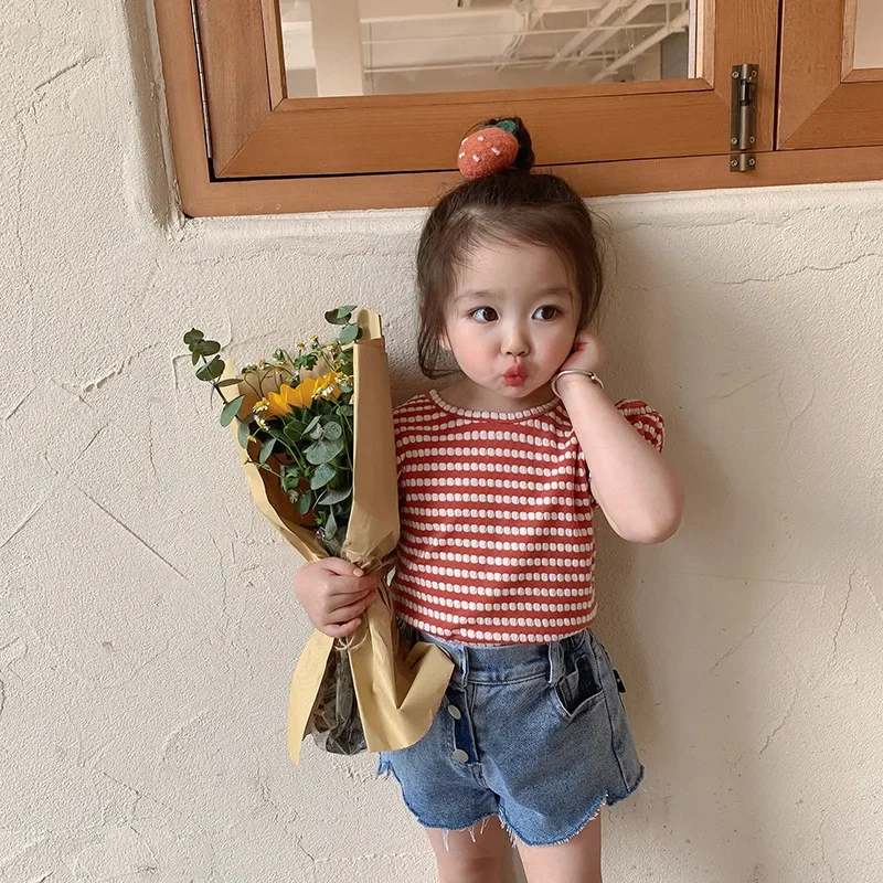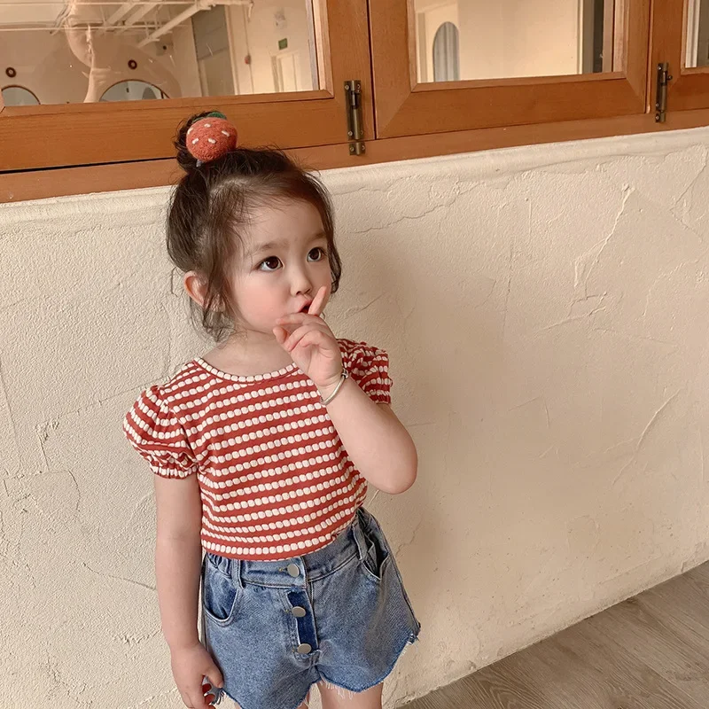 Nahia Summer Girls Children Sleeve Striped Tops Tee Comfortable
