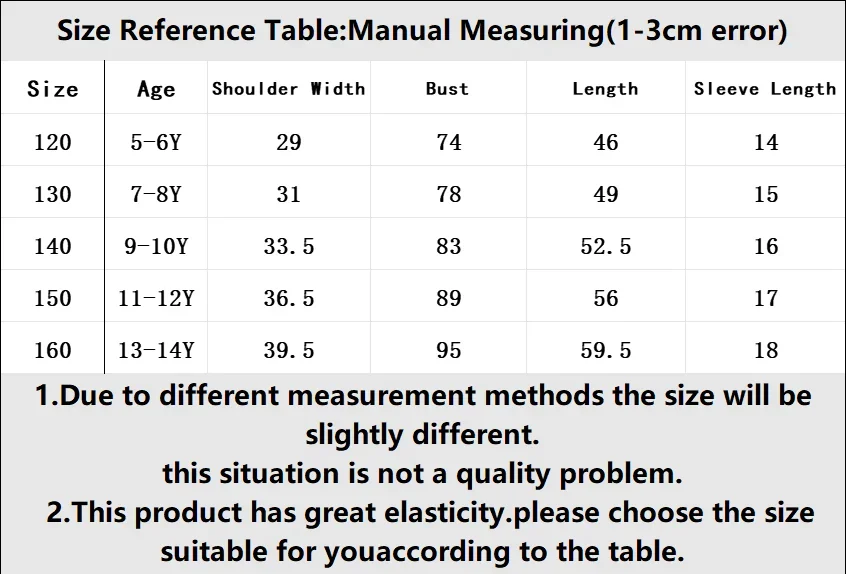 ❤【Different Sizes of T-shirts】120-160 is child size.We have Multiple sizes for you to choose which can meet the needs of the vast majority of people.(Please noted that the size is smaller than the normal size. Please order one size up if your child are taller, stronger, or grows faster.)
