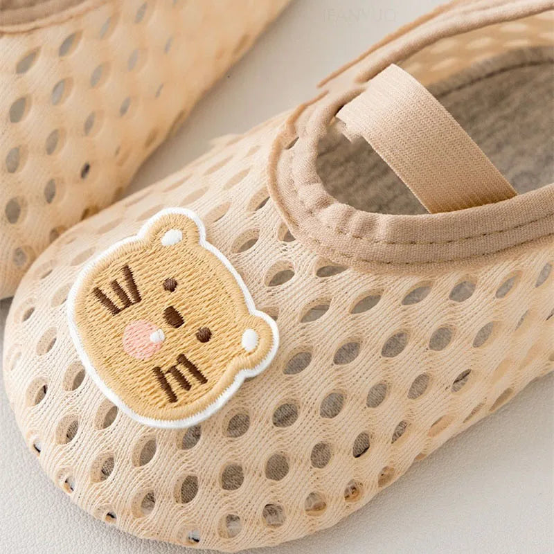 These baby socks are soft breathable and designed to support safe first steps with an anti-slip sole and flexible fit 🧸 The mesh design keeps little feet cool while the fun animal faces add a playful touch 🐰🐶🦁