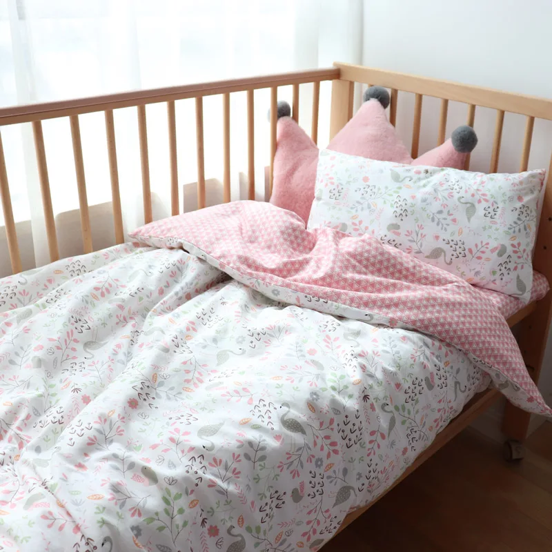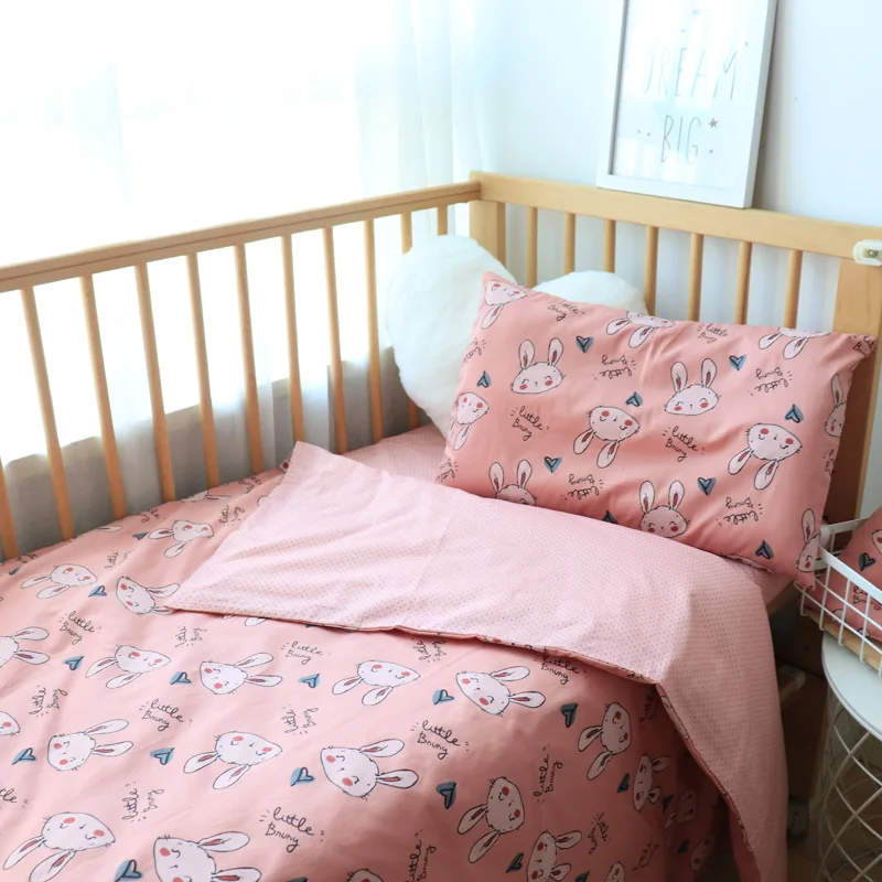 Newborns Pure Cotton Crib Kit Cot Bed Linen Duvet Cover Pillowcase Baby Bedding Set