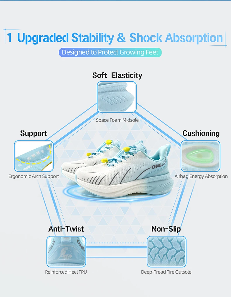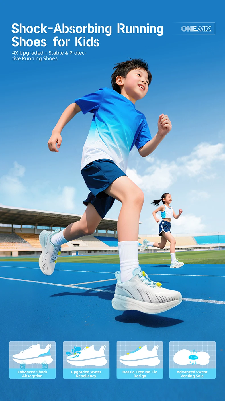 Bryson ONEMIX Children Sports Shoes combine comfort and performance for active kids. Featuring breathable mesh construction, these shoes keep feet cool during play and sports activities. The waterproof design protects against puddles and wet conditions, while the durable sole provides reliable traction on various surfaces. Lightweight and flexible, they support natural movement and growing feet. Perfect for everyday wear, school, or athletic pursuits, these shoes help your child stay comfortable and confident all day long.