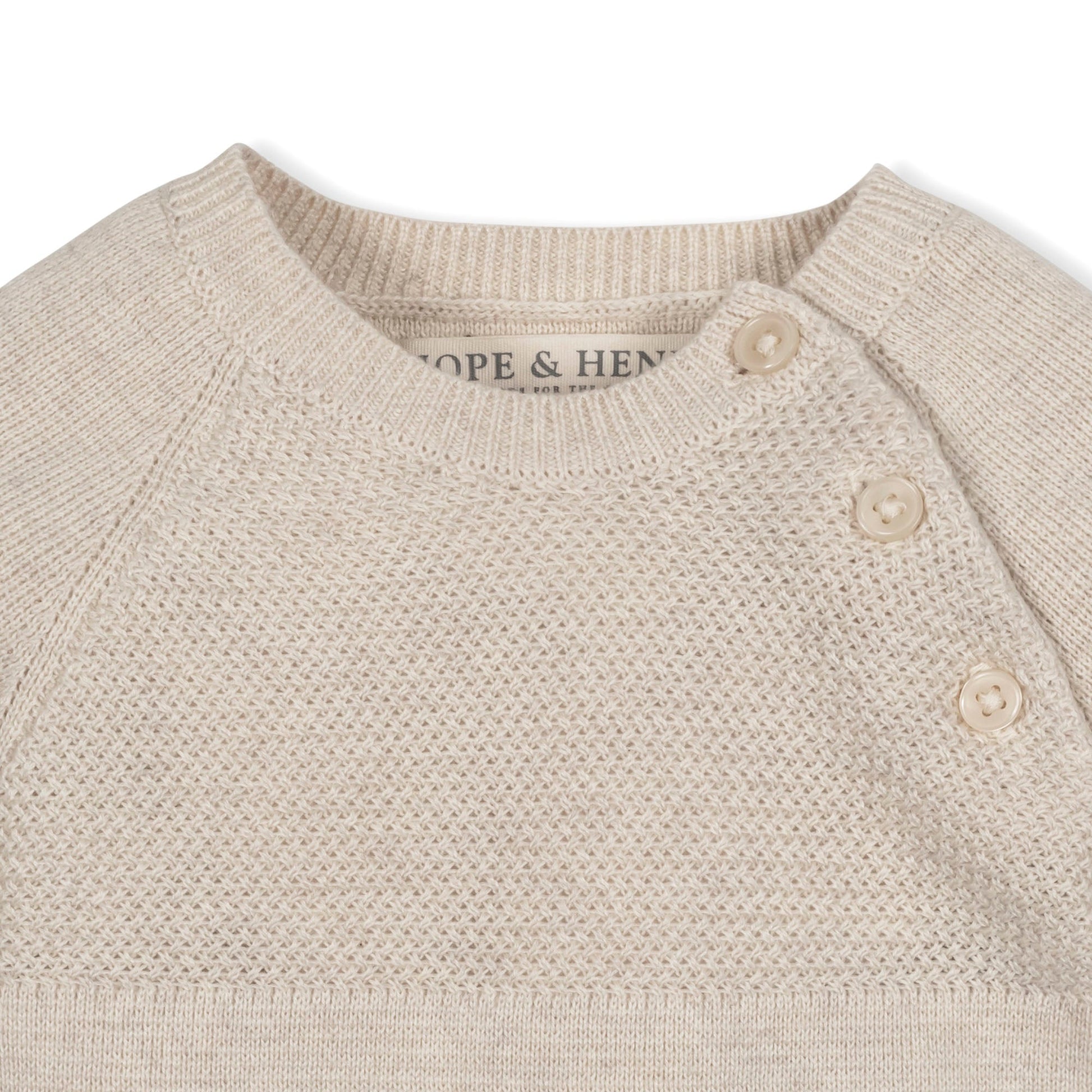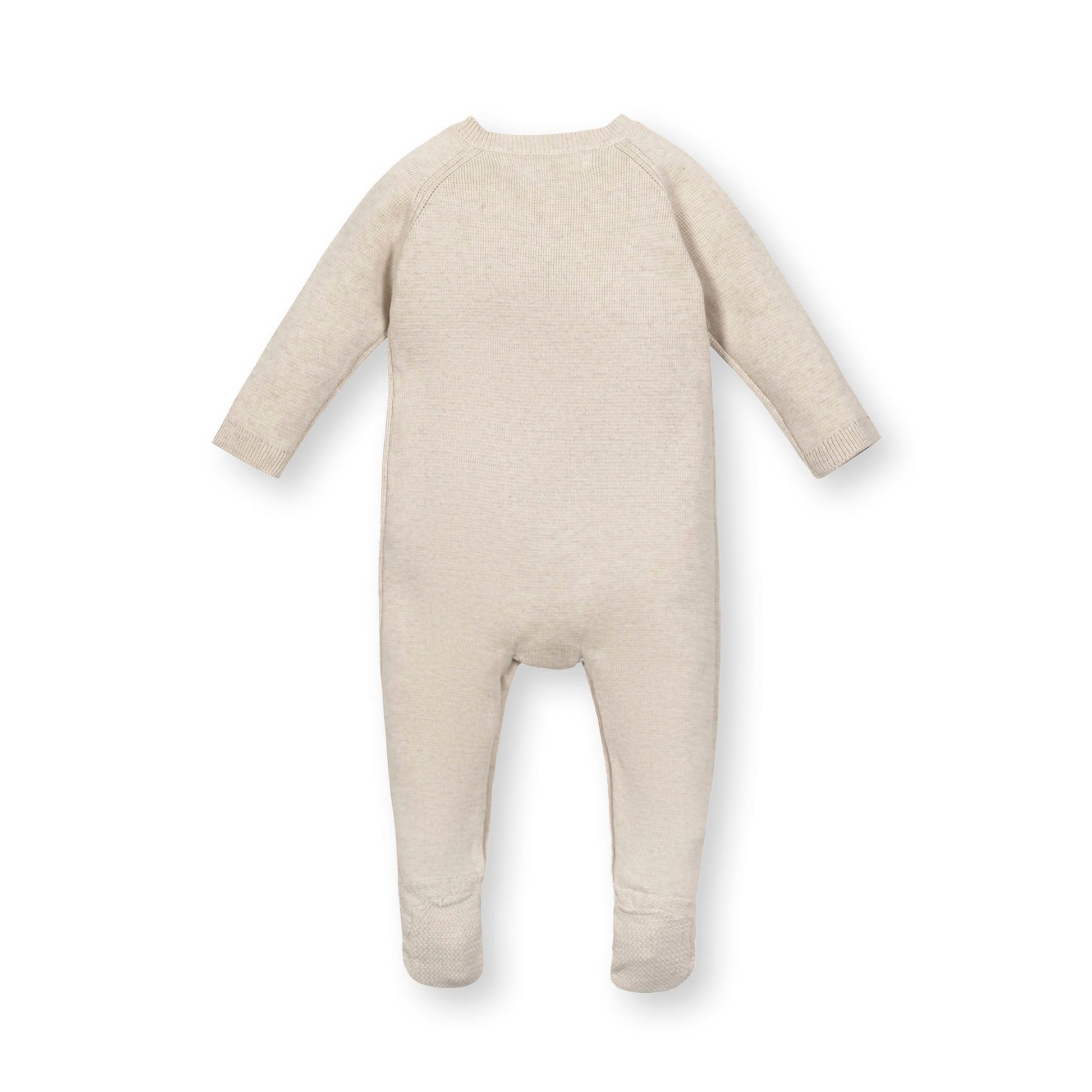 A delicate textured stitch at the bodice sets this sweater romper apart from the rest. Crafted from our luxuriously soft organic cotton, this one-piece features raglan sleeves, footed legs to keep baby warm, and button closures at the shoulder and inseam. An easy, comfortable, and beautiful outfit in one. Makes a great baby gift or heirloom piece for your family.