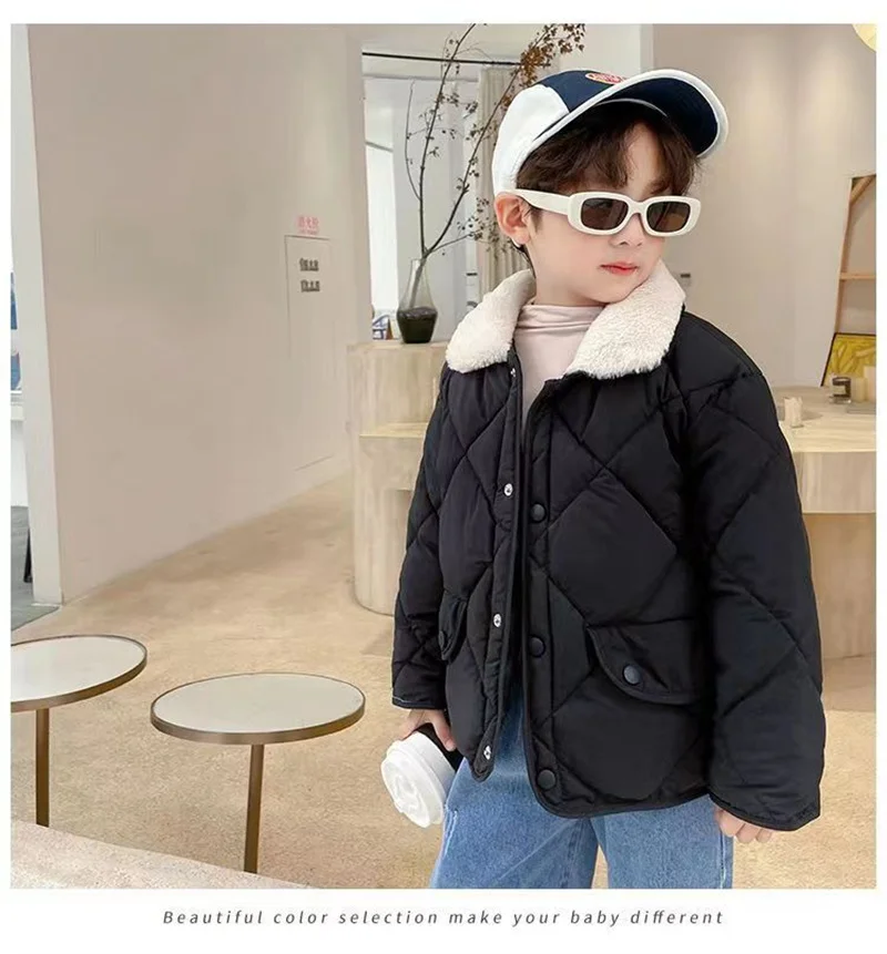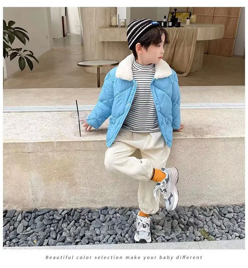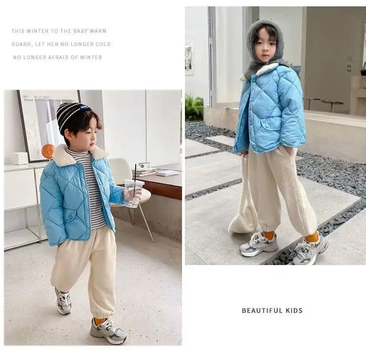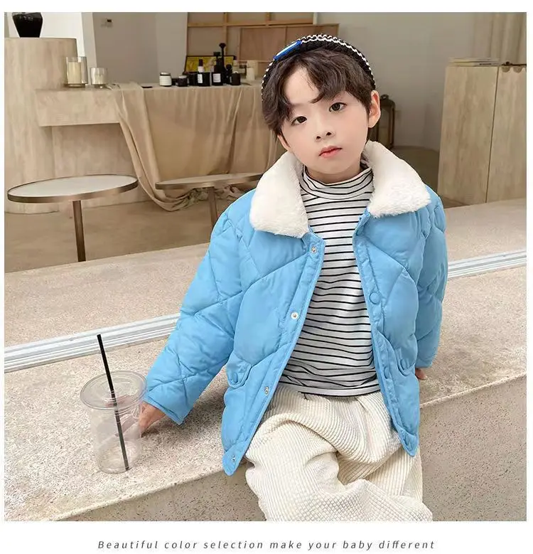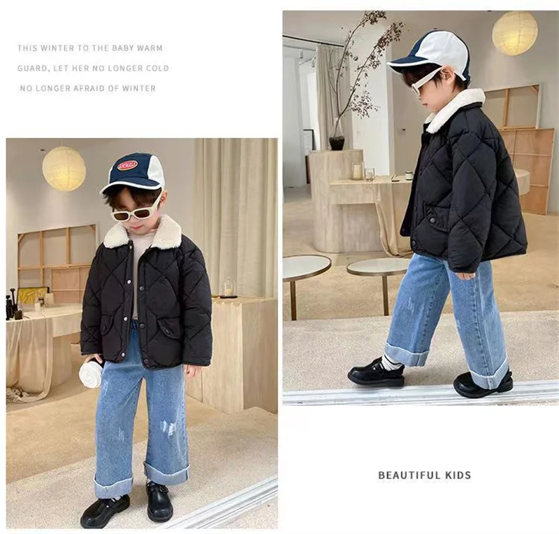 style: Boy Warm Fur Collar Short Down Coat