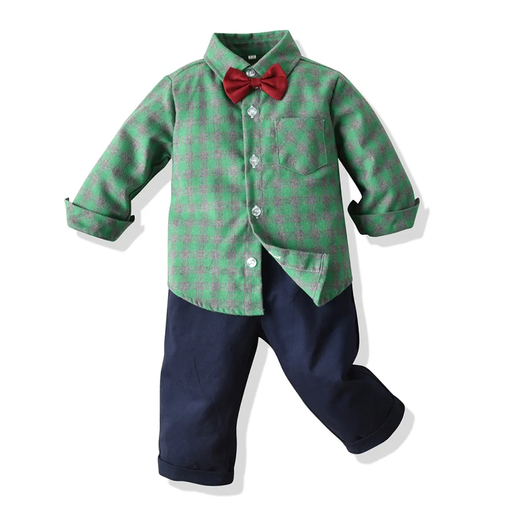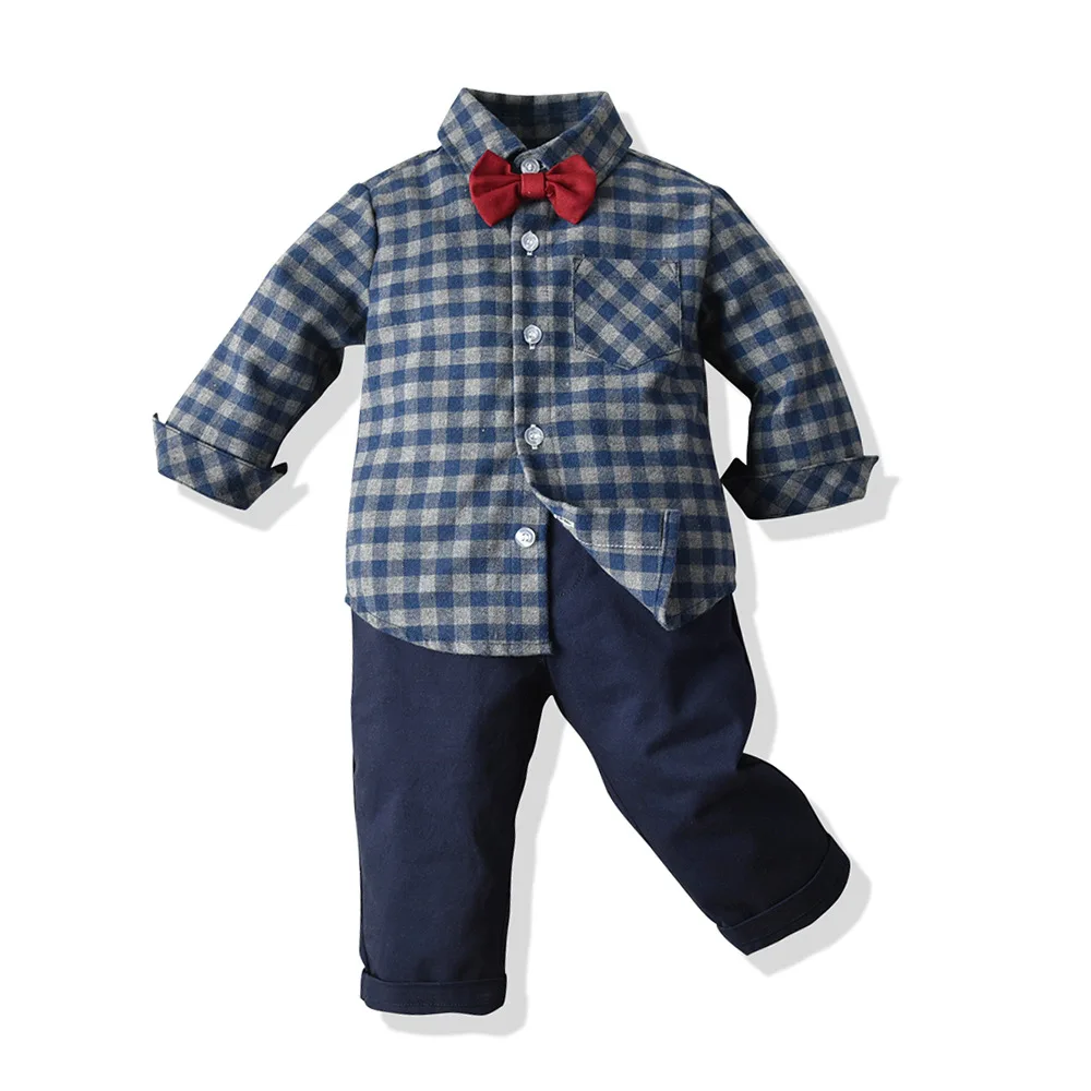 Plaid Pants Set for Boys 0 to 3Y with Bow Tie