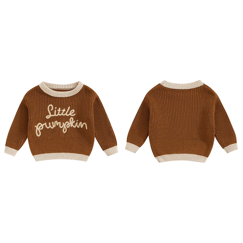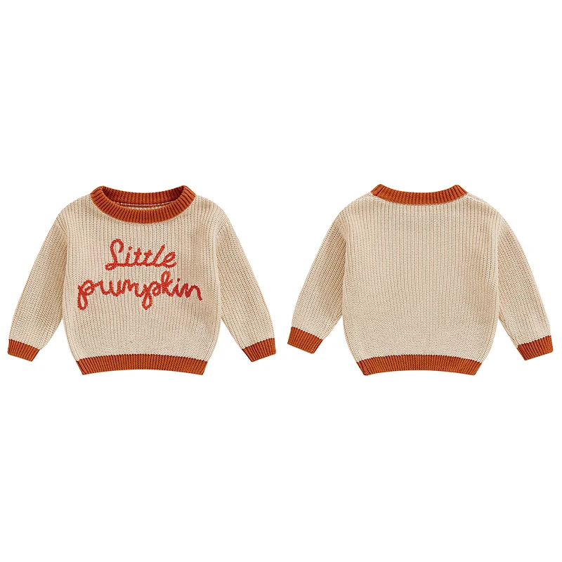 Boys Halloween Knit Sweater Long Sleeve Round Neck Letter Print Pullover Knitwear