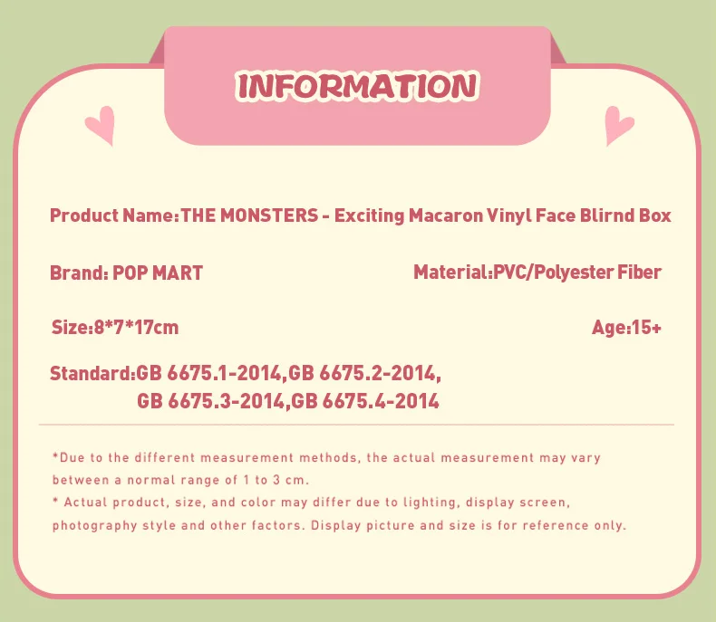 Discover the enchanting world of POP MART's LABUB 1.0 Sweet Macaron collection—a sophisticated blind box experience featuring exquisite pastel-designed characters. Each box contains an authentic collectible figure, meticulously crafted with attention to detail that appeals to collectors of all ages. The delicate macaron-inspired aesthetic combines whimsy with elegance, making these limited-edition pieces perfect for display or gifting. Unbox the mystery and add a touch of refined charm to your collection with this officially licensed POP MART treasure.
