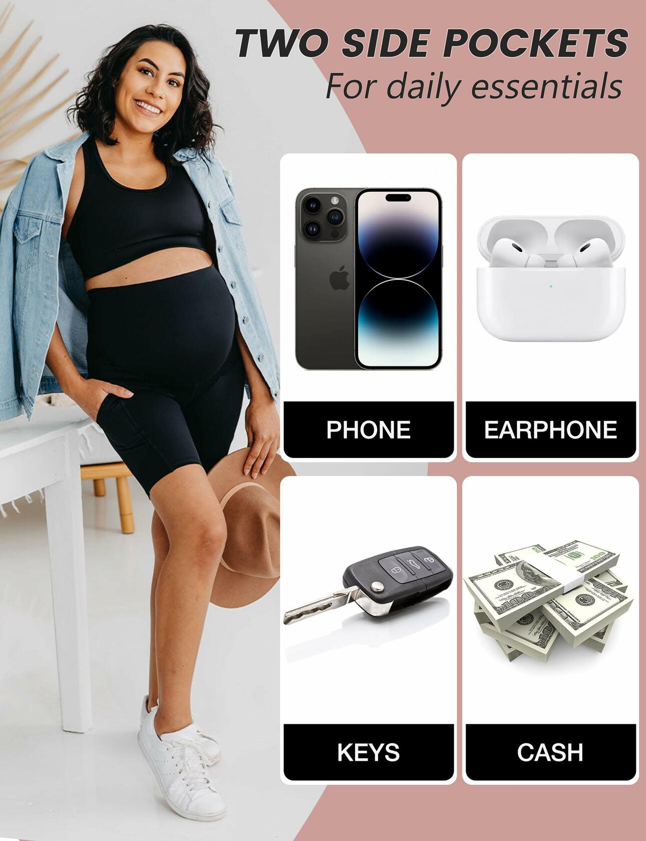 Naila Maternity Shorts with Pockets 8" Cyan Small Soft Over Belly