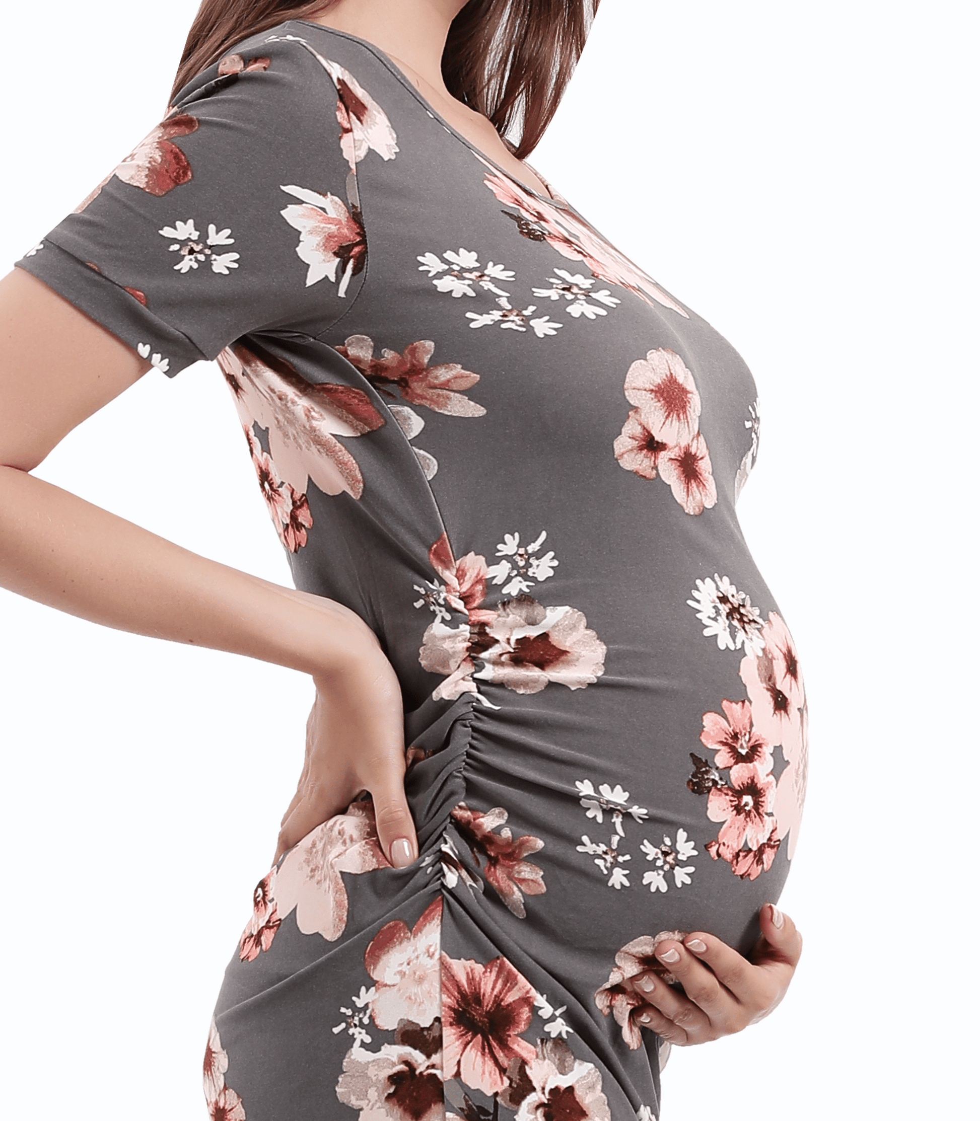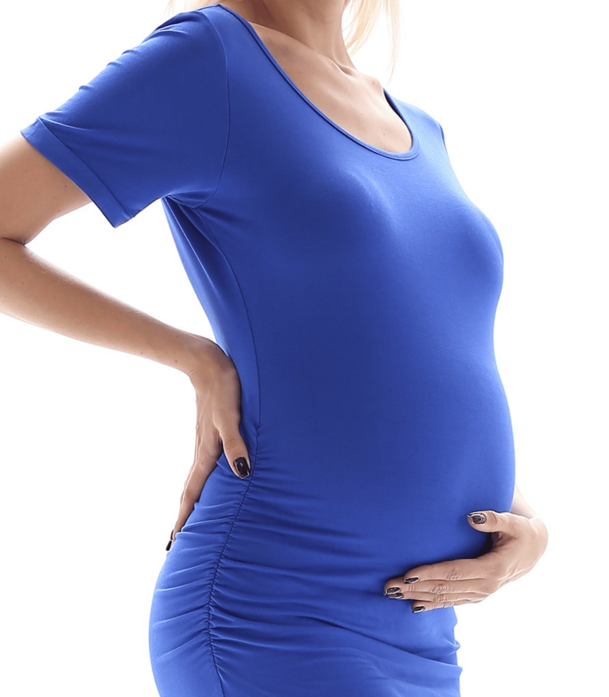 This bodycon maternity dress is a form-fitting and stylish choice for pregnant women. This dress is made from a stretchy fabric that hugs the body, showing off the natural curves of the pregnant figure and most importantly providing comfort. The bodycon fit is flattering and feminine, making it a great choice for special occasions or a night out. It can be dressed up with heels and statement jewelry, or kept casual with sneakers and a denim jacket. This bodycon maternity dress is a versatile and stylish choice for any stage of pregnancy.