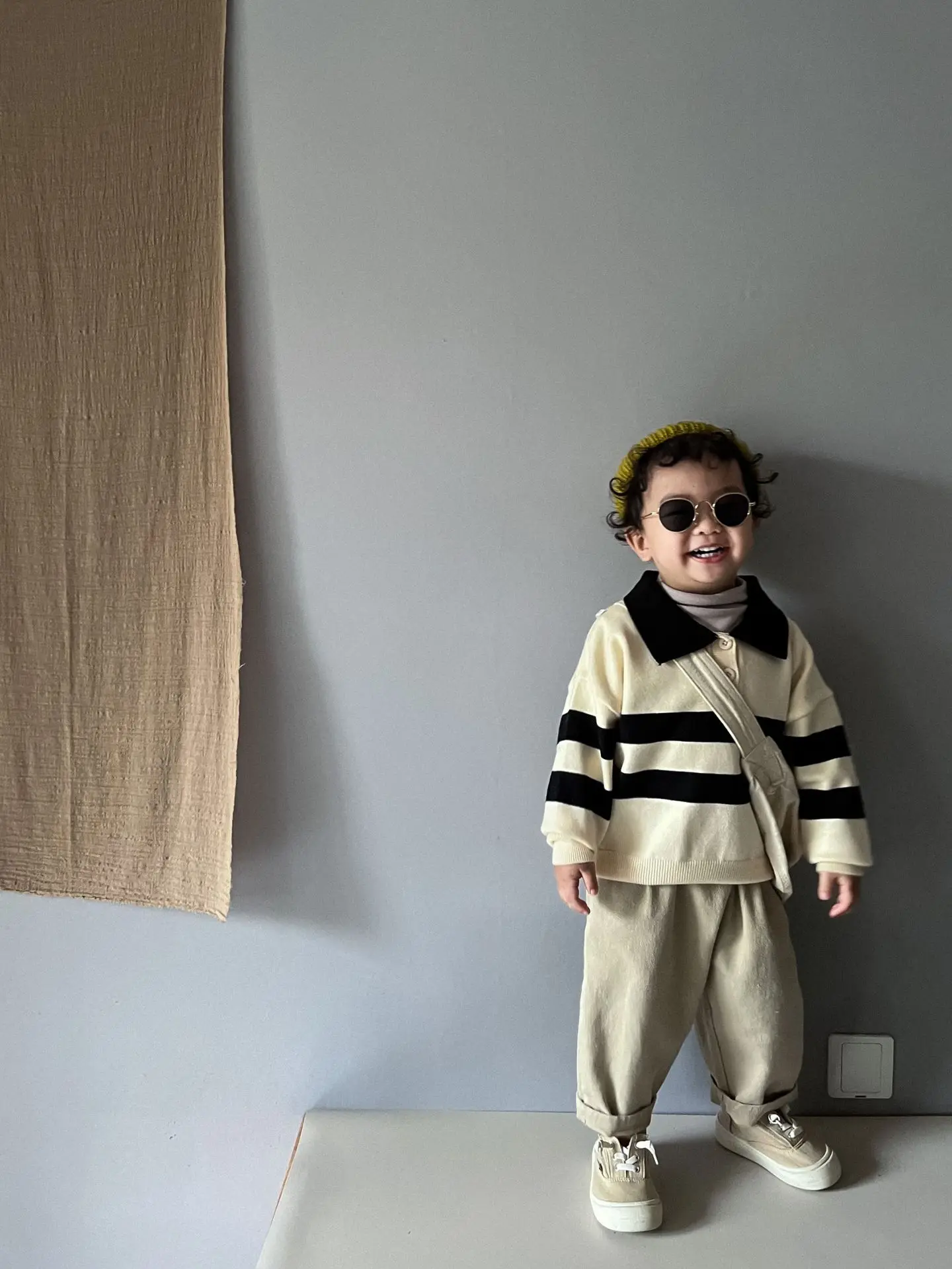 Autumn New Children's Sweater Two button striped polo knit sweater Kids Tops Boys fashion loose Knit wear