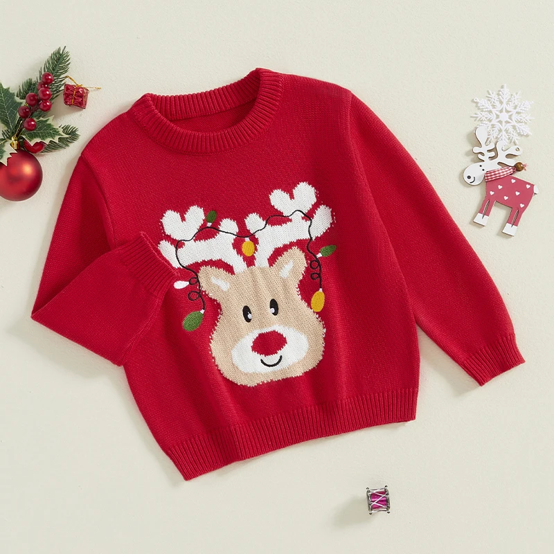 Baby Christmas Sweaters Long Sleeve Reindeer Print Knit Pullovers Infant Jumper Tops