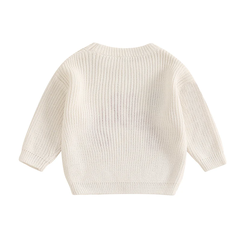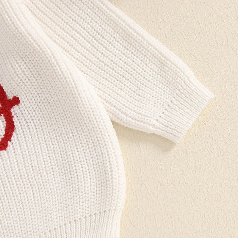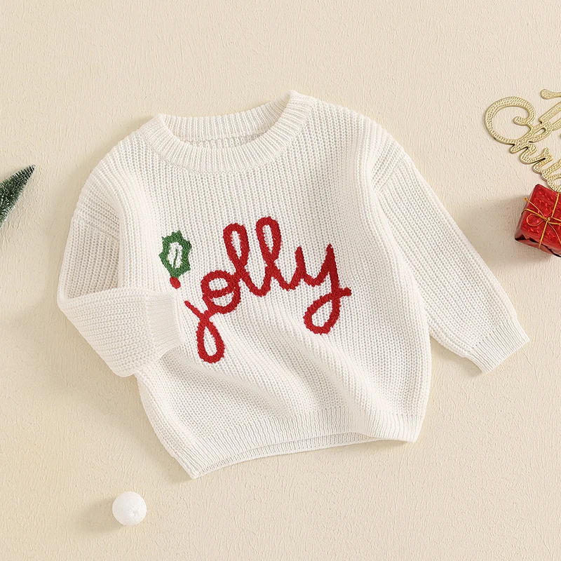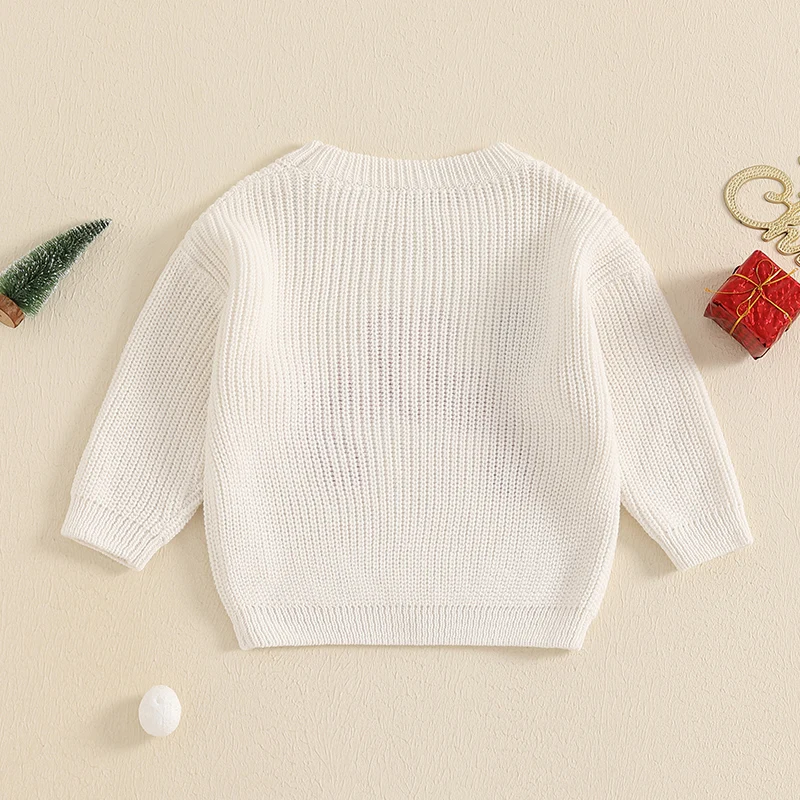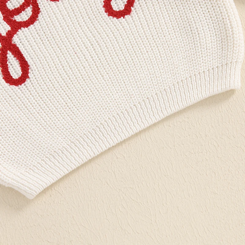 Little Boy Girl Christmas Sweater Letter Embroidery Long Sleeve Crew Neck Pullover Knit Tops for Winter Fall
