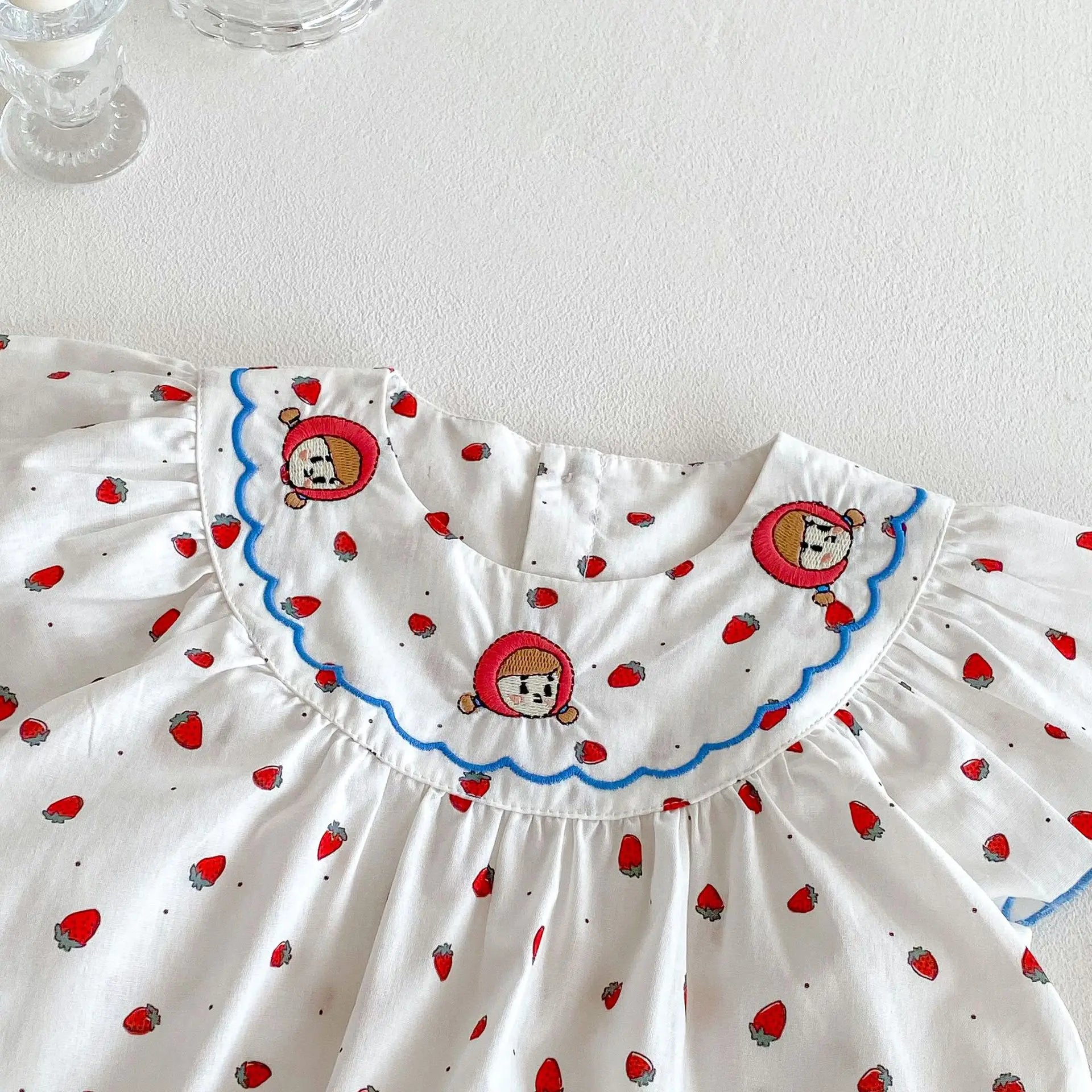 Embrace effortless elegance with this charming sleeveless romper, adorned with a delightful strawberry motif. Crafted for warm-weather sophistication, this piece combines playful design with refined simplicity. The sleeveless silhouette offers breathable comfort, while the thoughtful strawberry detailing adds a touch of whimsy to your wardrobe. Perfect for casual outings or relaxed gatherings, this romper transitions seamlessly from day to evening wear with understated grace.