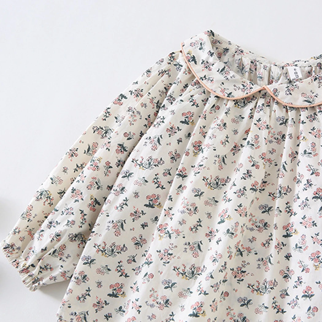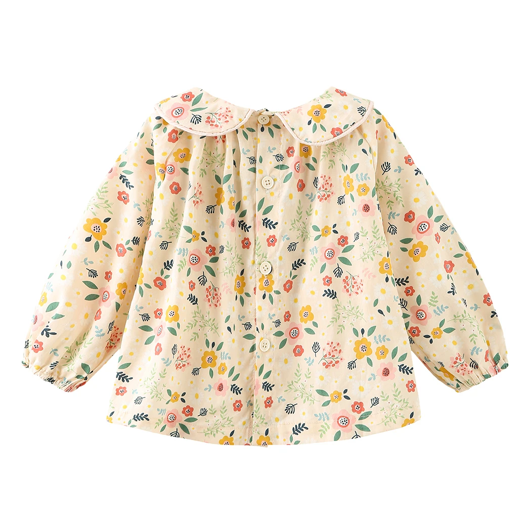 Adorable floral girls shirt Spring fall long sleeve petal collar blouse for girls clothes infant kids tops children jackets outwearSize:12-18m,18-24m,2-3y,3-4y,4-5y