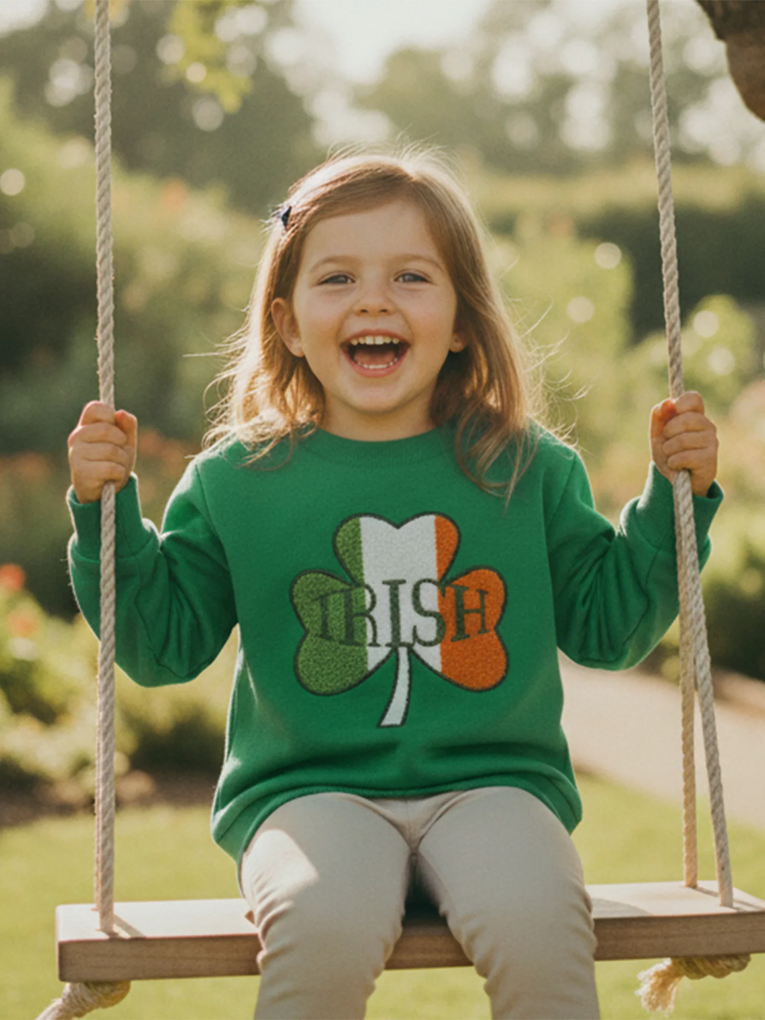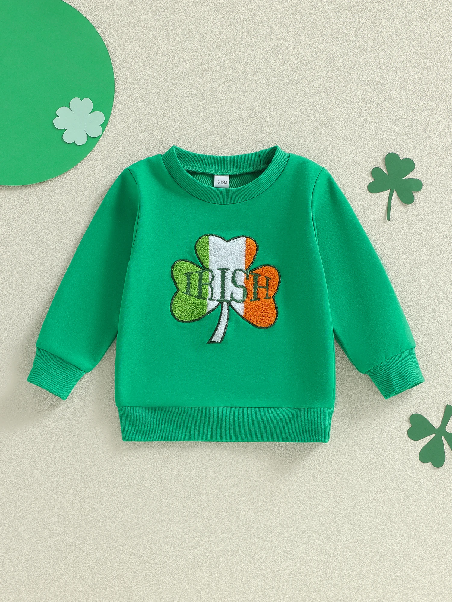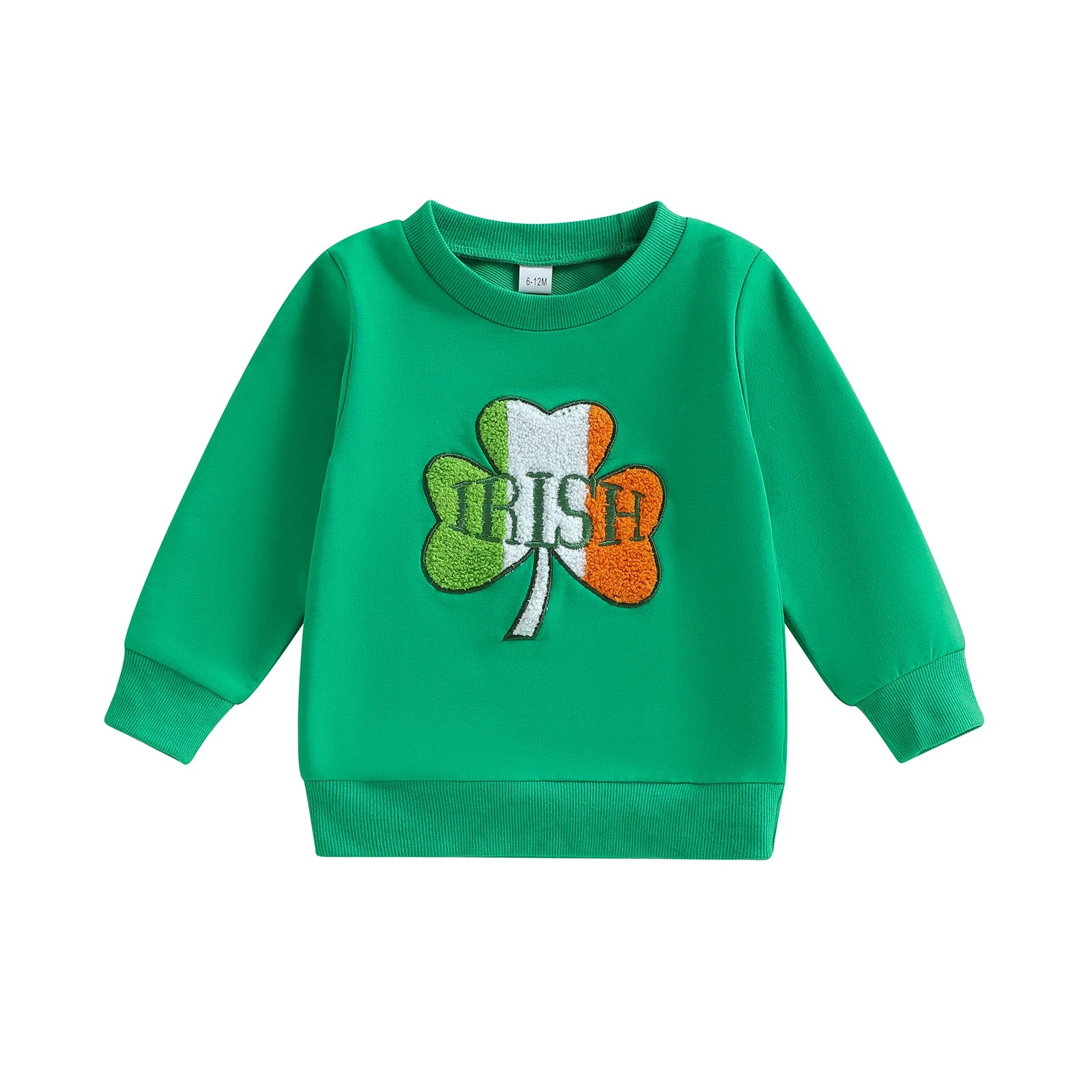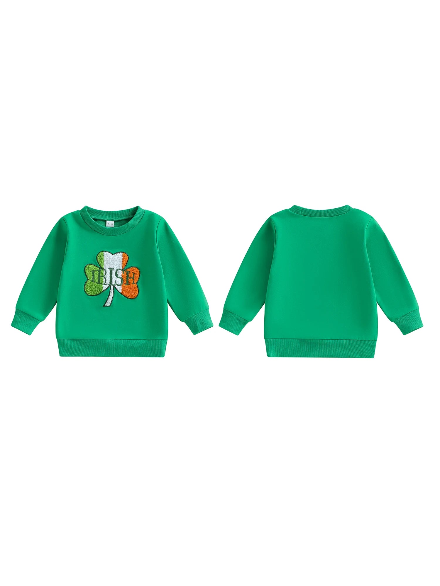 Little Girls Irish Day Sweatshirts Long Sleeve Round Neck Four Leaf Clover Embroidered Pullover