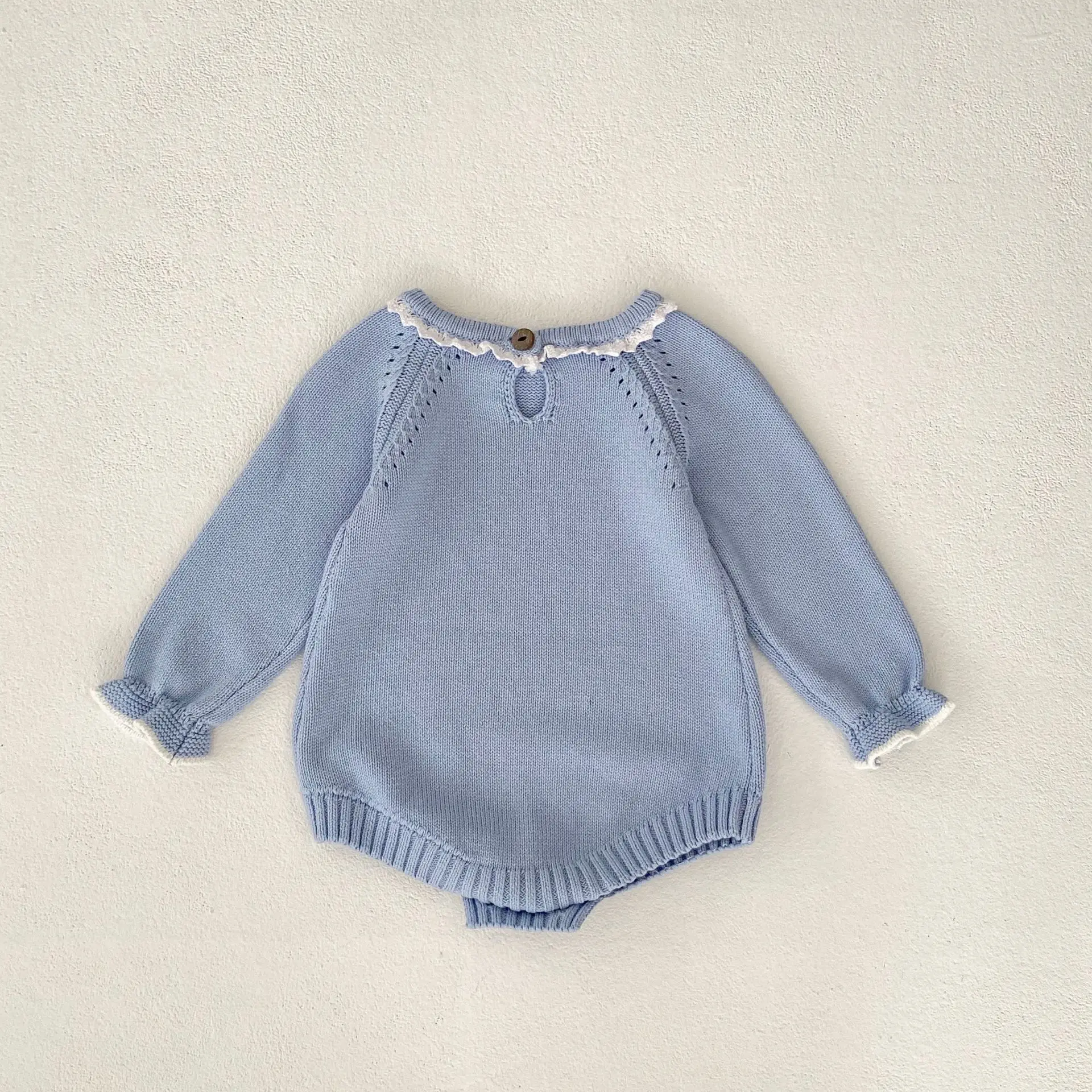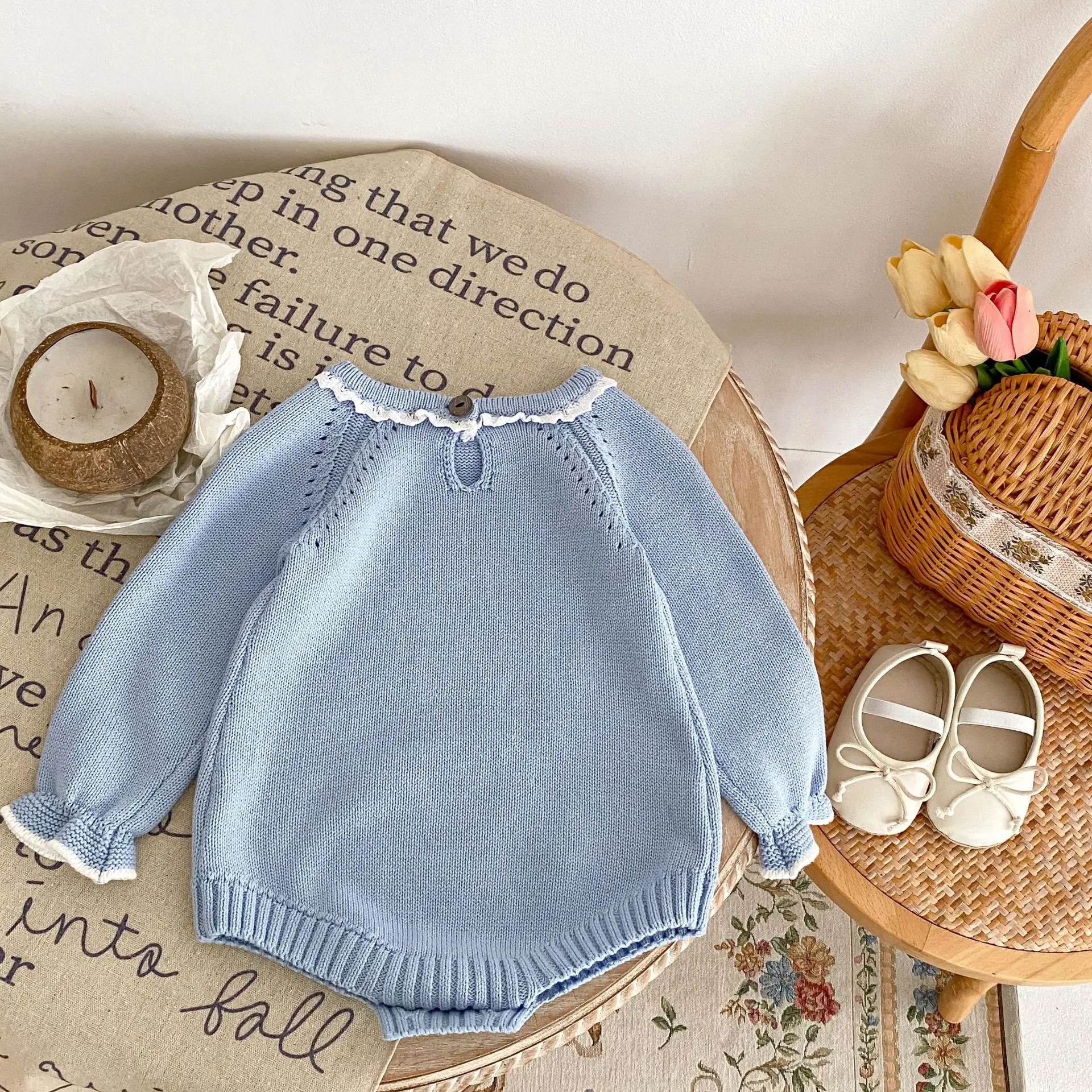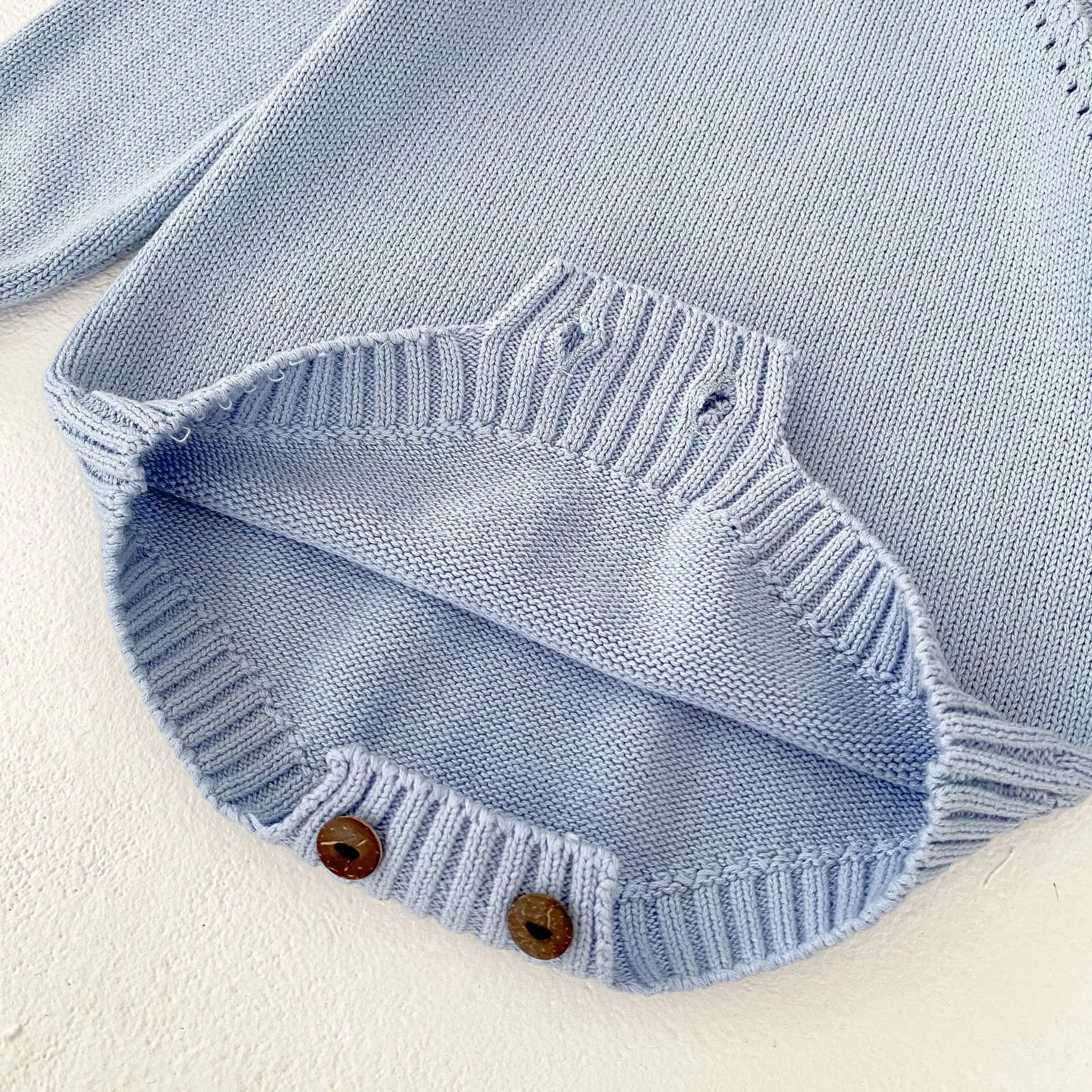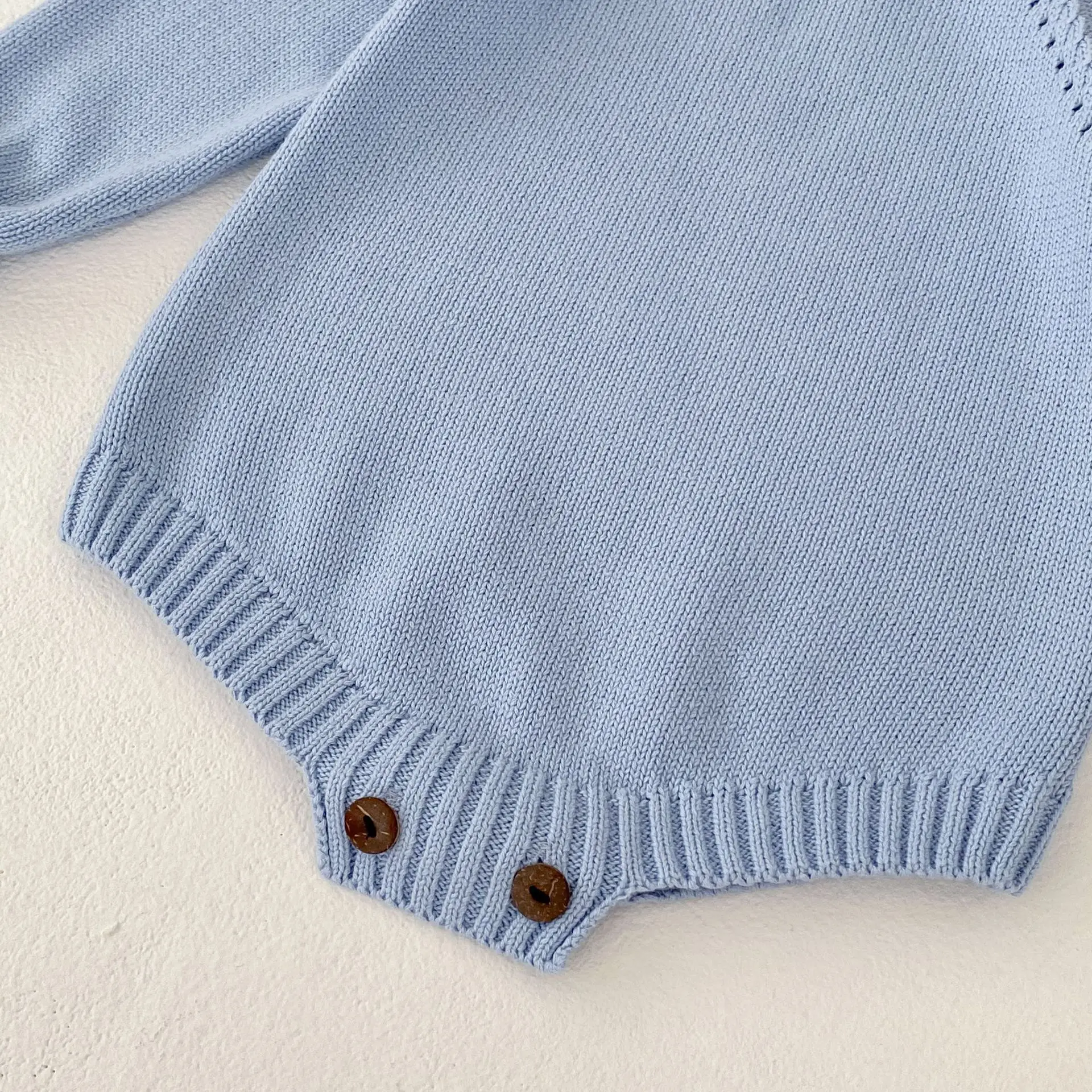 Sophia Baby Girls Romper Blue Long Sleeve Button Warm
