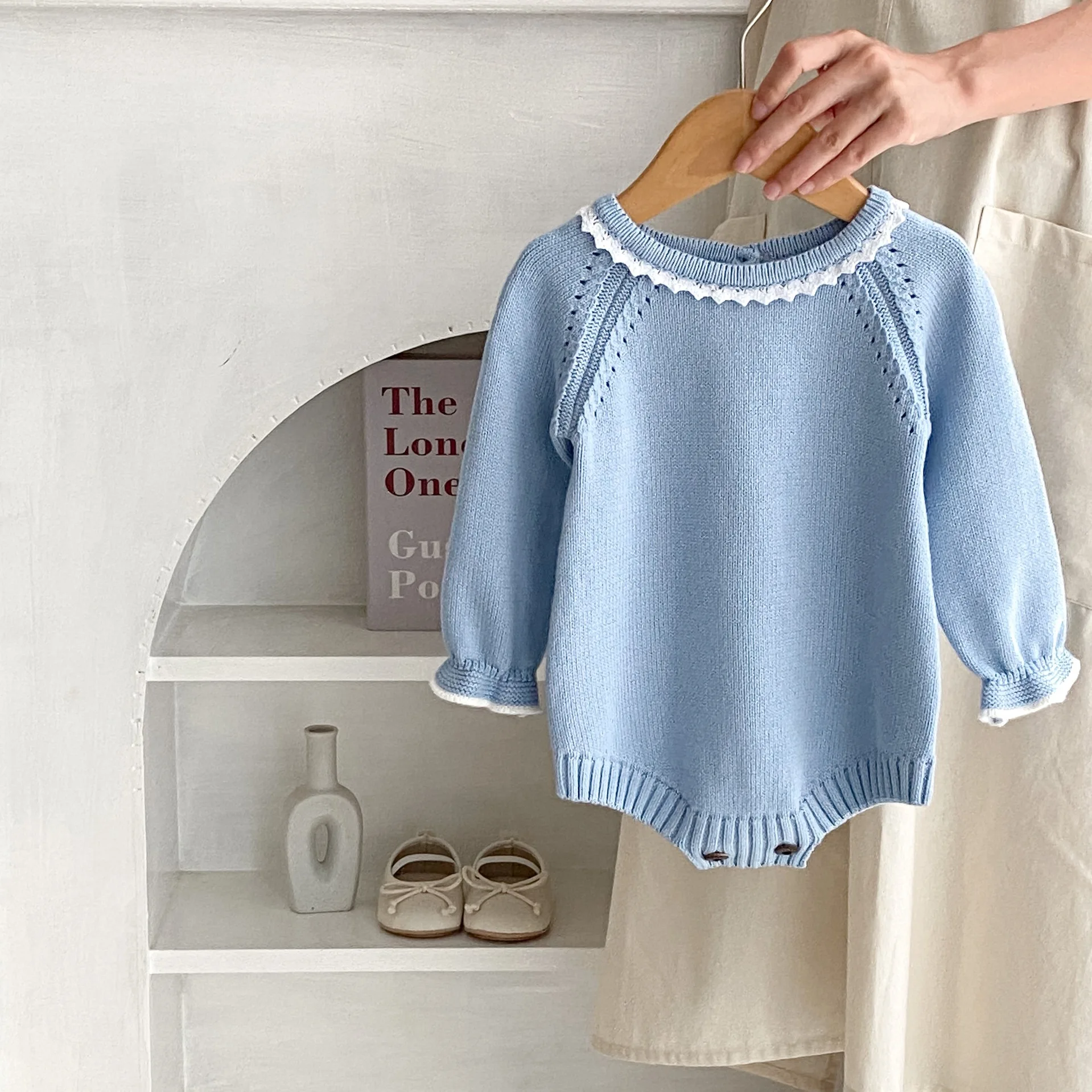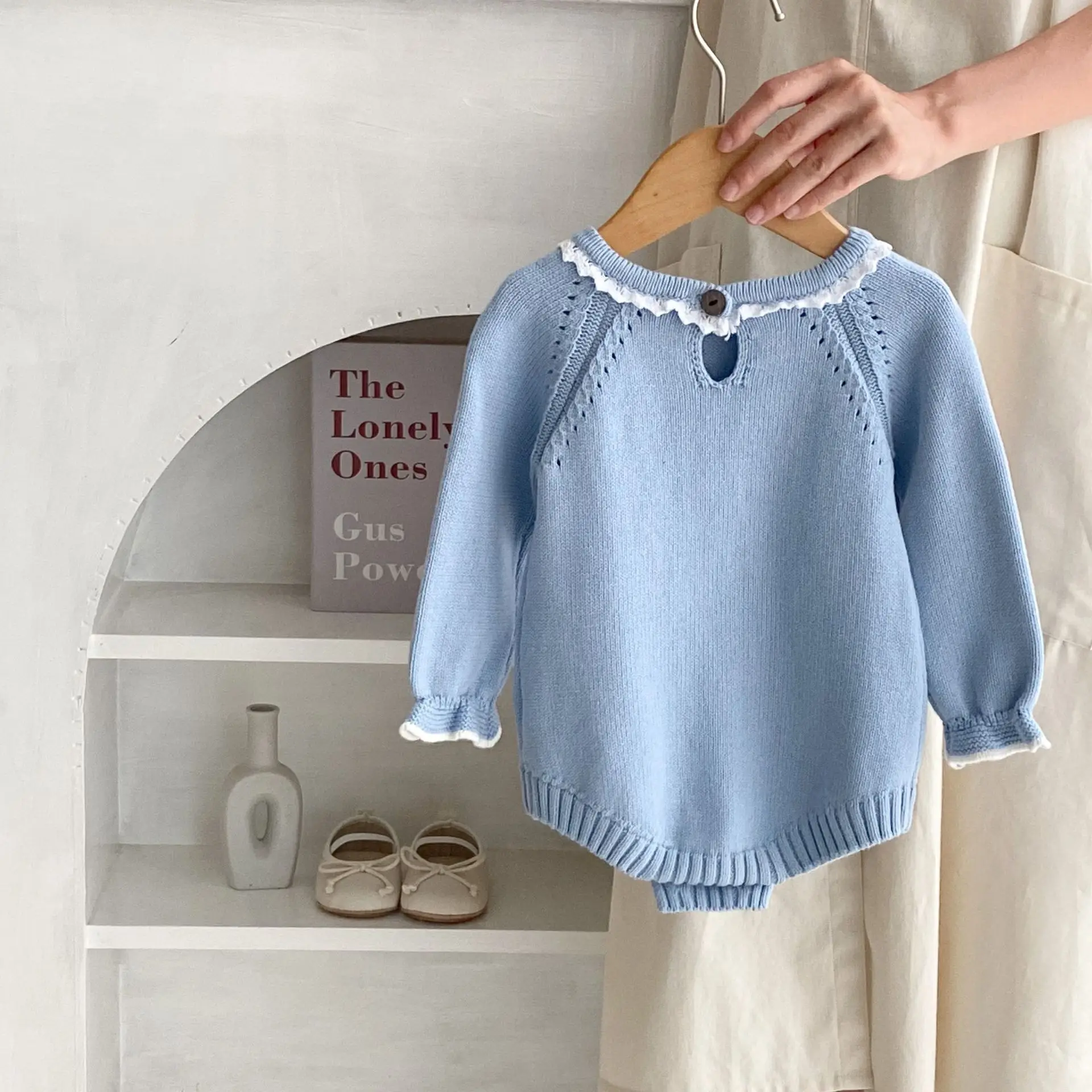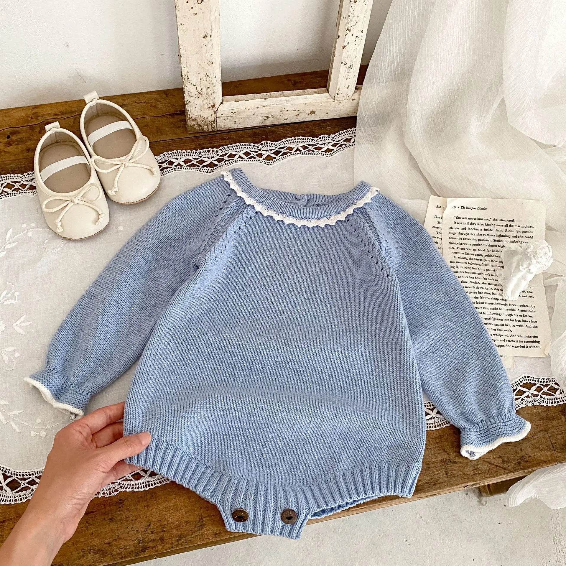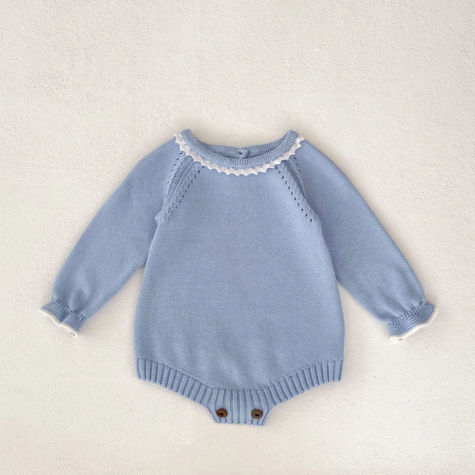 Sophia Baby Girls Romper Blue Long Sleeve Button Warm