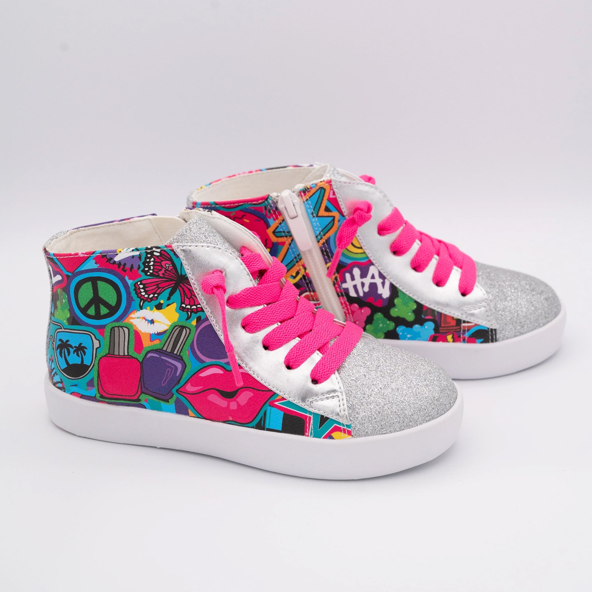 Our exclusive StyleChild X KicksBySammy limited edition hightop is the coolest must have fun showstopper yet! This custom KicksBySammy exclusive print on our StyleChild signature zip up hightop makes the perfect pair!