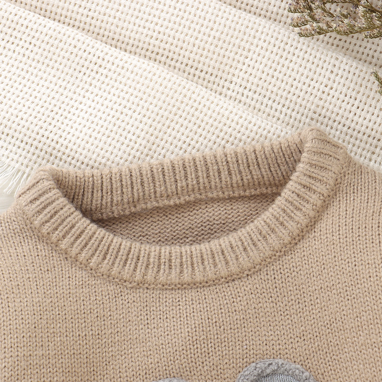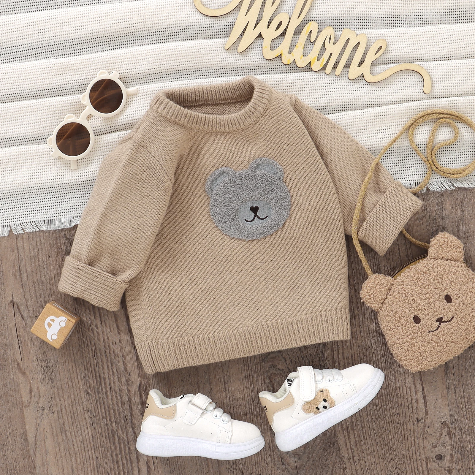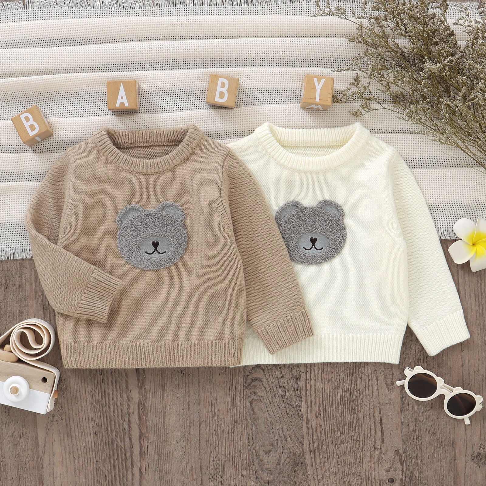 Baby Boy Girl Knit Sweater Bear Embroidery Crew Neck Long Sleeve Pullover Tops for Fall Winter