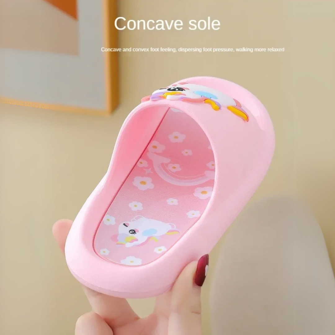 Let your little one step into a world of magic with these adorable Unicorn Cartoon Slippers! Made from soft, flexible PVC, these children's slides are lightweight, easy to slip on, and perfect for indoor or summer outdoor use. The cushioned sole offers all-day comfort, while the cute 3D unicorn design brings joy to every step.