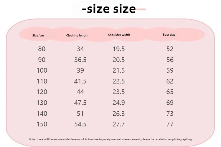2.Because of the different measurement methods,there may be 1 cm of the allowable range error.(1 inch=2.54 cm. 1 cm=0.39 inches.)