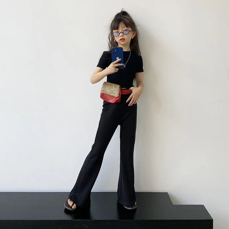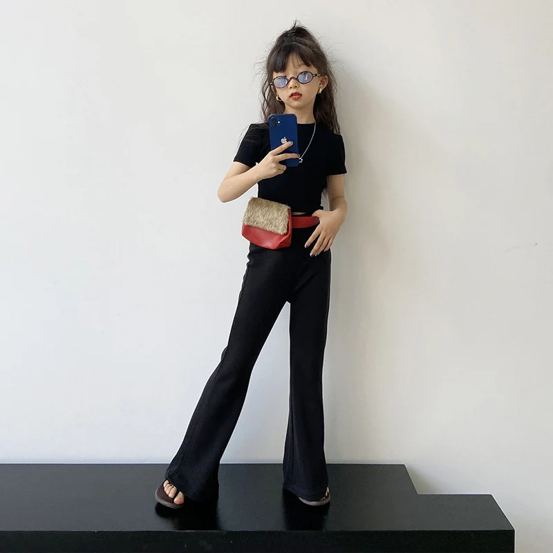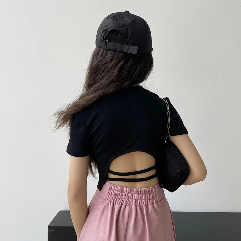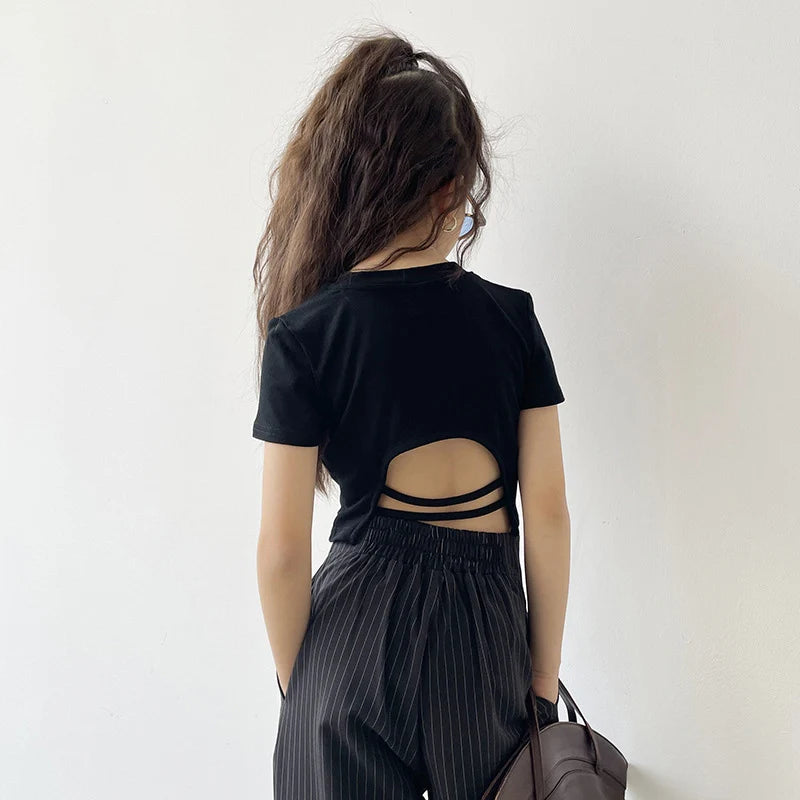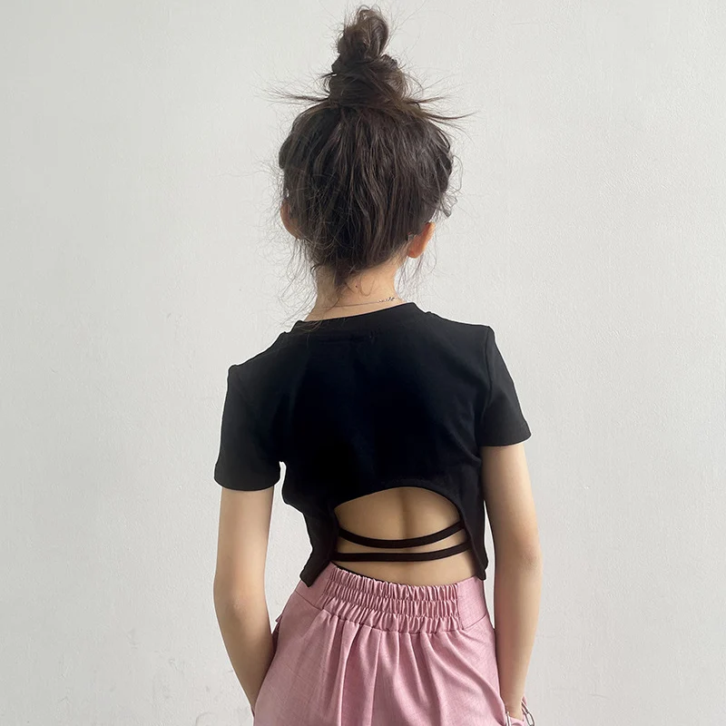 Name: Summer Girls T Shirt Baby Tee Shirt Kids Crop Top Children Clothes Fashion Back Hollow Strechable Coul Solid 5-14Y