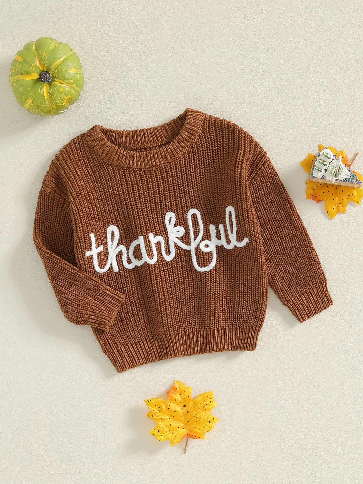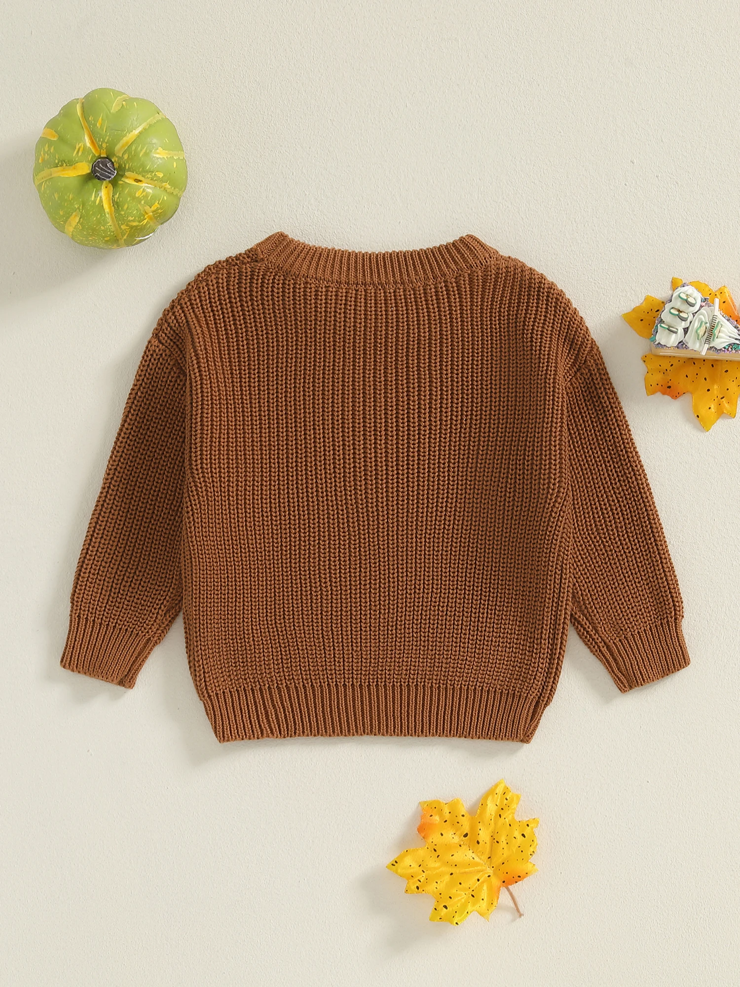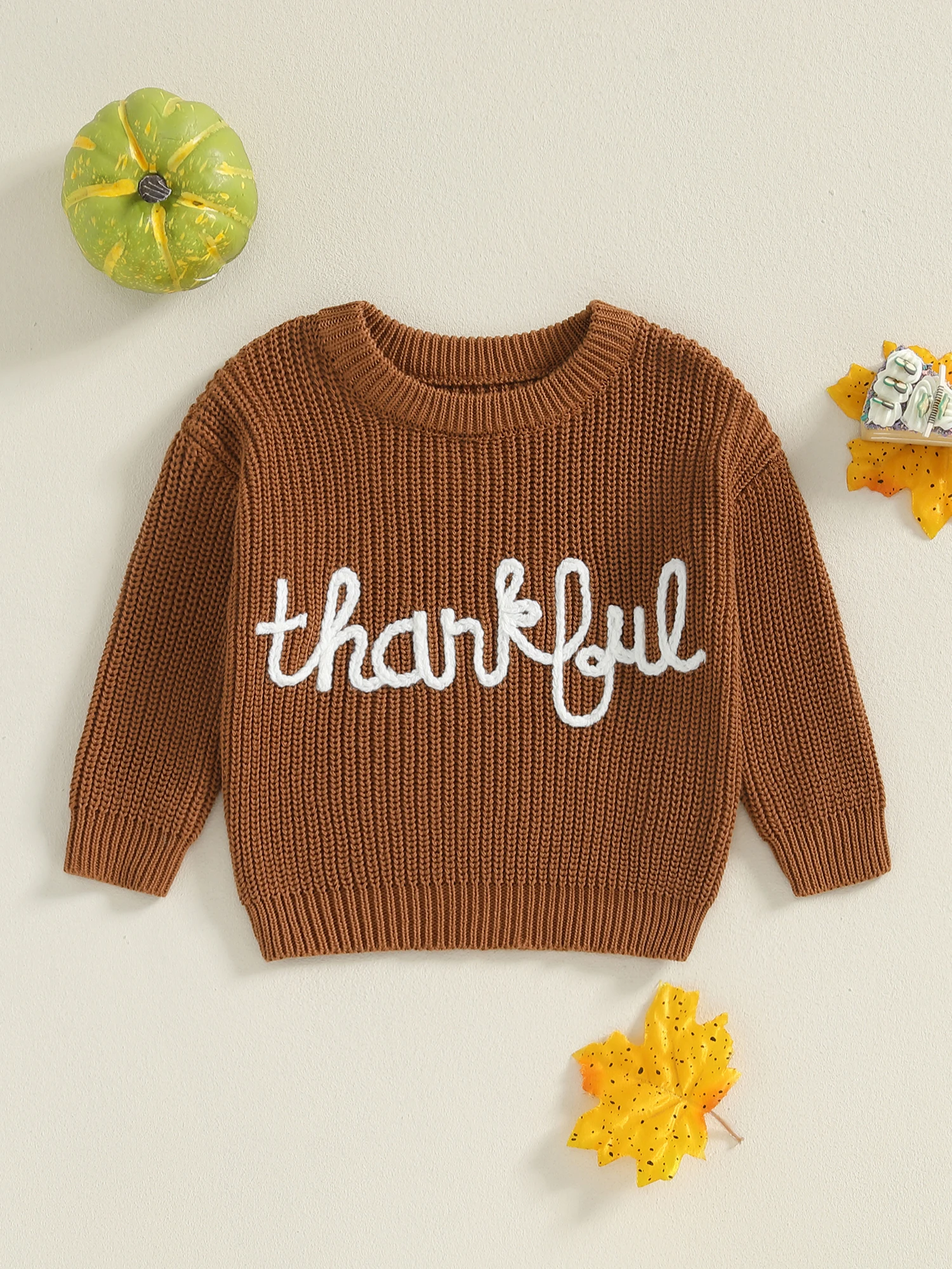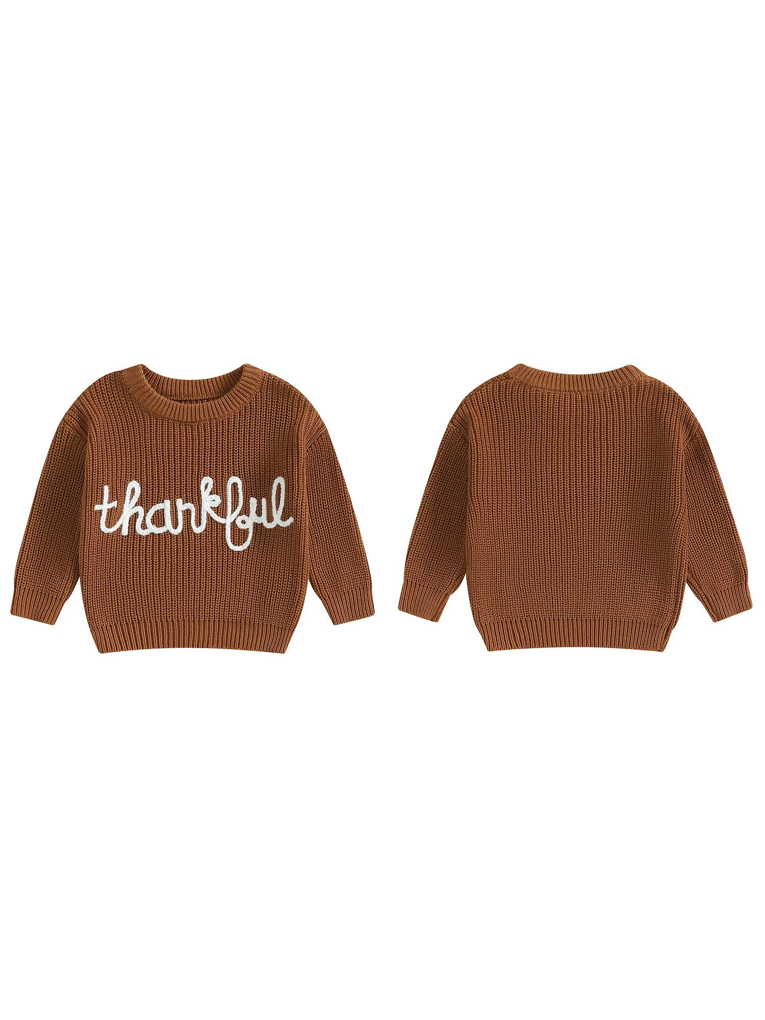 Baby Girls Boys Thanksgiving Knit Sweater Long Sleeve O Neck Letter Embroidery Pullover Knitwear