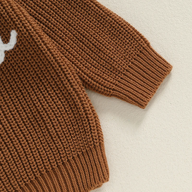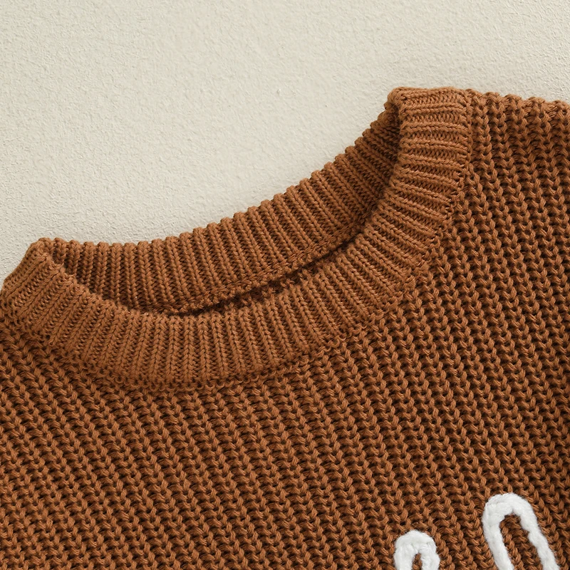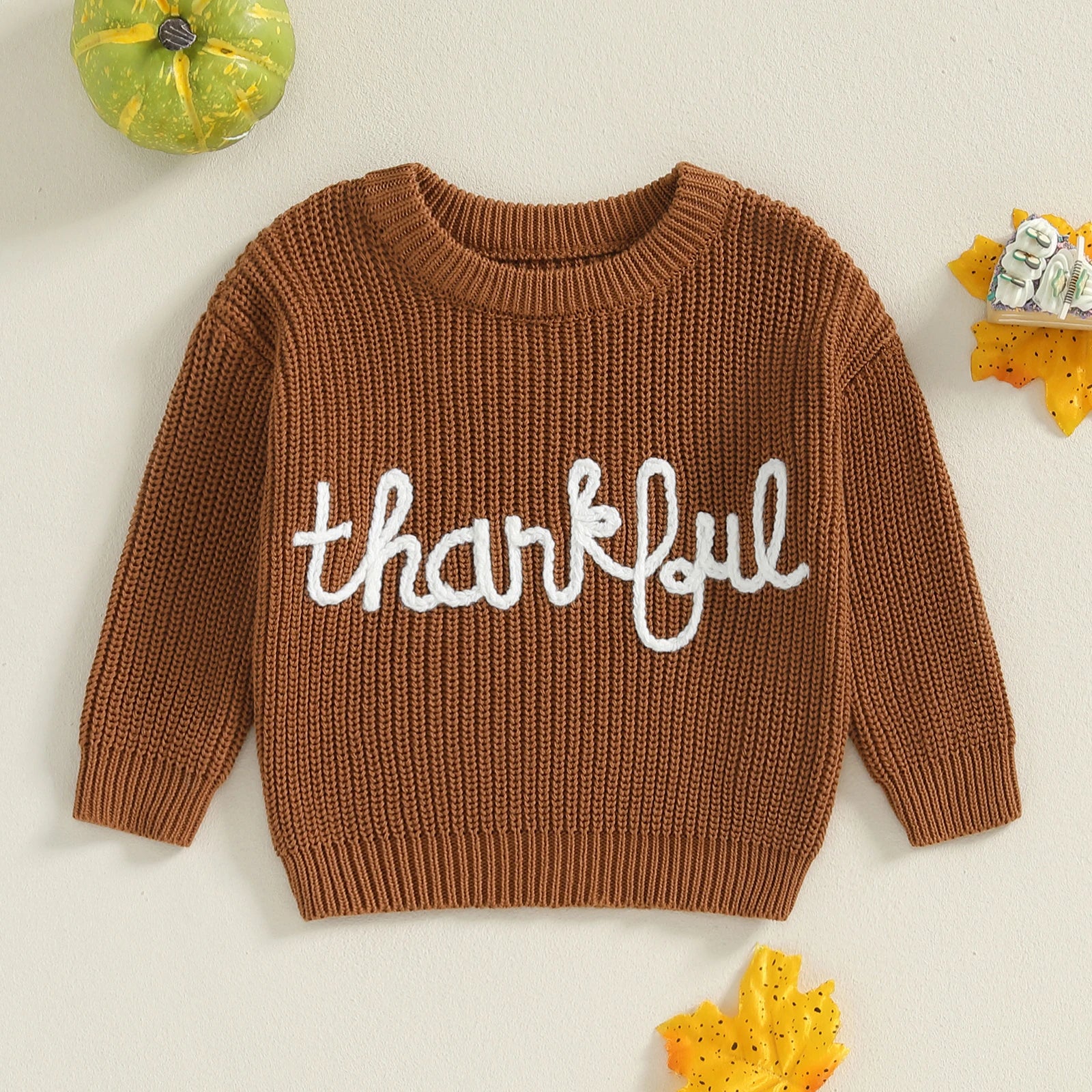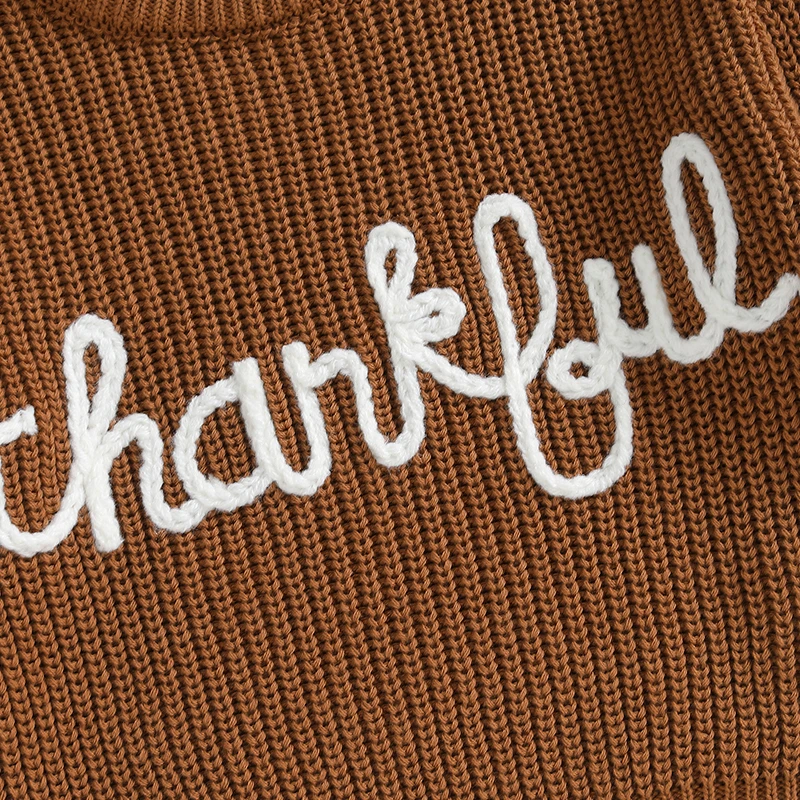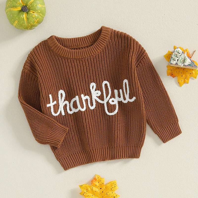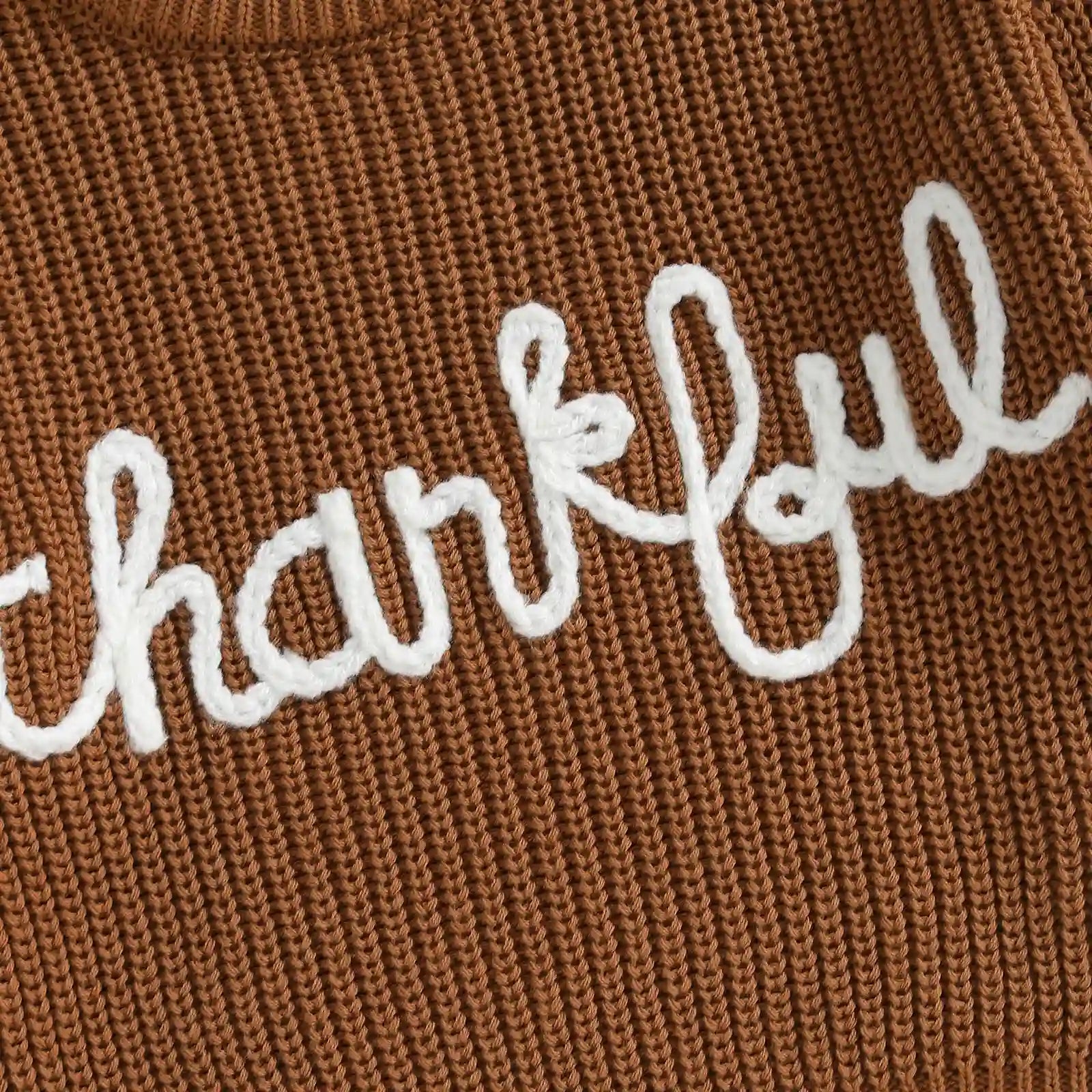 Baby Girls Boys Thanksgiving Knit Sweater Long Sleeve O Neck Letter Embroidery Pullover Knitwear